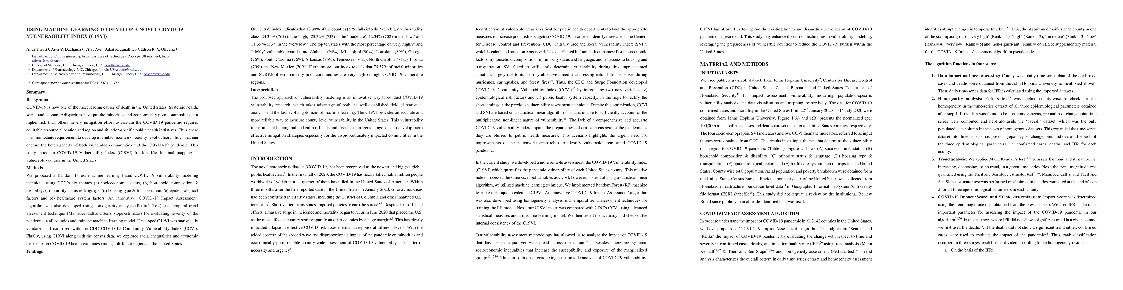 This study develops a COVID-19 Vulnerability Index (C19VI) using Random Forest machine learning to identify and map vulnerable counties in the U.S., revealing significant racial and economic disparities in COVID-19 impacts, and offering a more reliable measure than existing indices for emergency planning.