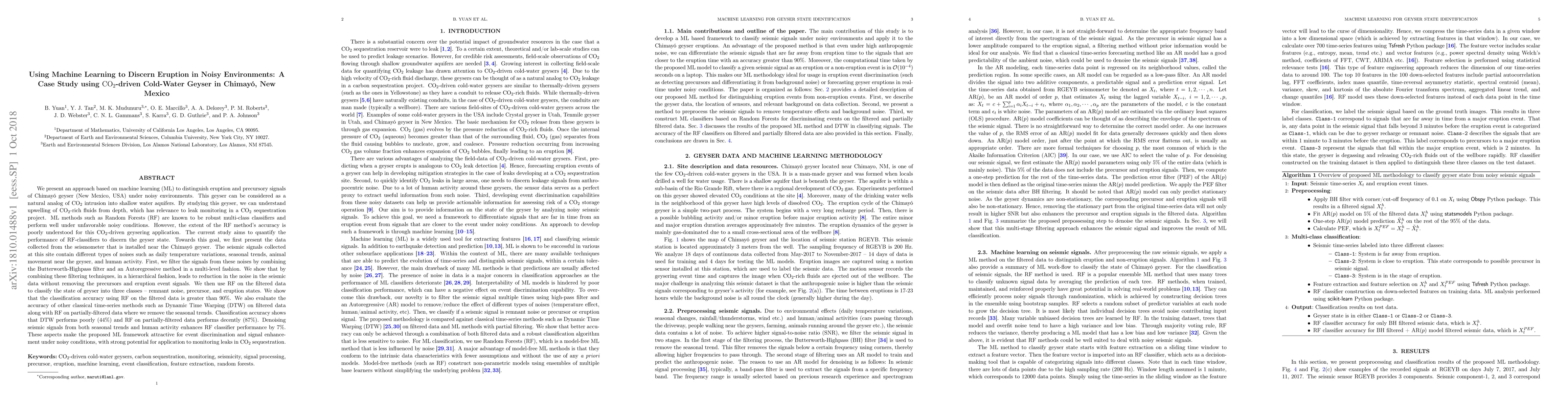 Researchers used machine learning to distinguish eruption signals from precursory signals in a CO2-driven geyser in New Mexico with high accuracy (>90%) even under noisy conditions.