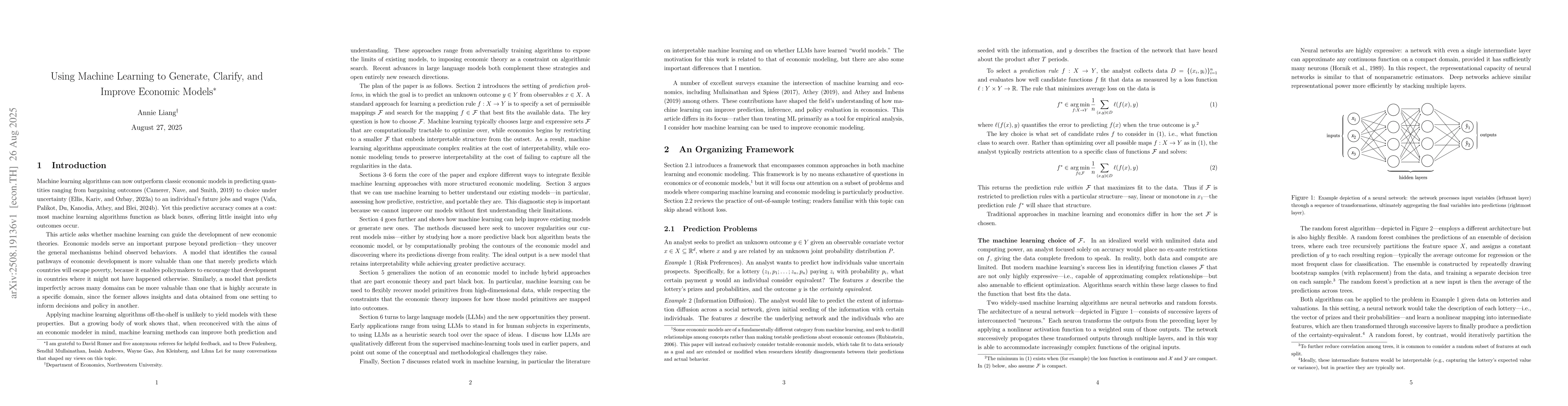 Machine learning algorithms can now outperform classic economic models in predicting quantities ranging from bargaining outcomes, to choice under uncertainty, to an individual's future jobs and wages. Yet this predictive accuracy comes at a cost: most machine learning algorithms function as black boxes, offering little insight into \emph{why} outcomes occur. This article asks whether machine learning can guide the development of new economic theories. Economic models serve an important purpose beyond prediction -- they uncover the general mechanisms behind observed behaviors. A model that identifies the causal pathways of economic development is more valuable than one that merely predicts which countries will escape poverty, because it enables policymakers to encourage that development in countries where it might not have happened otherwise. Similarly, a model that predicts imperfectly across many domains can be more valuable than one that is highly accurate in a specific domain, since the former allows insights and data obtained from one setting to inform decisions and policy in another. Applying machine learning algorithms off-the-shelf is unlikely to yield such models. But recent work shows that, when reconceived with the aims of an economic modeler in mind, machine learning methods can improve both prediction and understanding. These approaches range from adversarially training algorithms to expose the limits of existing models, to imposing economic theory as a constraint on algorithmic search. Advances in large language models complement these strategies and open new research directions.
