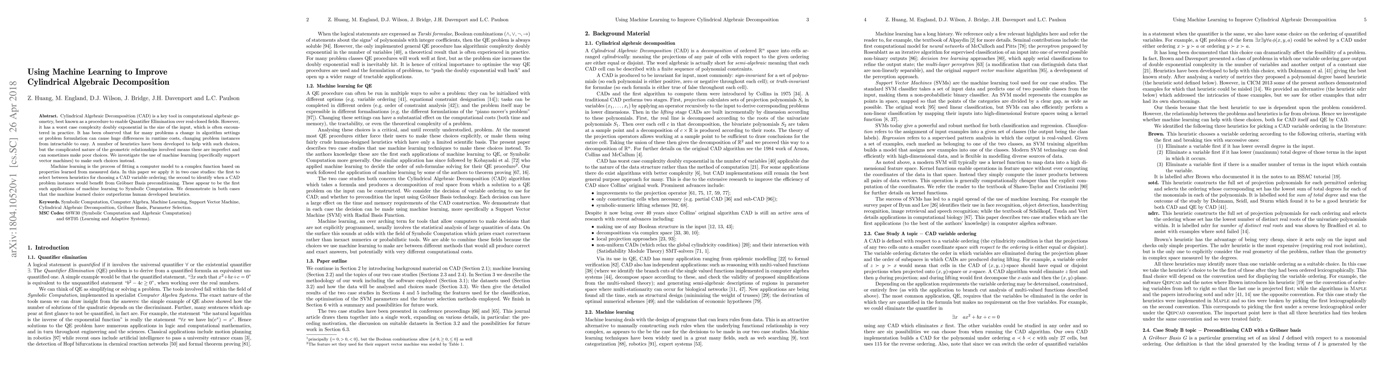 Cylindrical Algebraic Decomposition (CAD) is a key tool in computational algebraic geometry, best known as a procedure to enable Quantifier Elimination over real-closed fields. However, it has a worst case complexity doubly exponential in the size of the input, which is often encountered in practice. It has been observed that for many problems a change in algorithm settings or problem formulation can cause huge differences in runtime costs, changing problem instances from intractable to easy. A number of heuristics have been developed to help with such choices, but the complicated nature of the geometric relationships involved means these are imperfect and can sometimes make poor choices. We investigate the use of machine learning (specifically support vector machines) to make such choices instead. Machine learning is the process of fitting a computer model to a complex function based on properties learned from measured data. In this paper we apply it in two case studies: the first to select between heuristics for choosing a CAD variable ordering; the second to identify when a CAD problem instance would benefit from Groebner Basis preconditioning. These appear to be the first such applications of machine learning to Symbolic Computation. We demonstrate in both cases that the machine learned choice outperforms human developed heuristics.