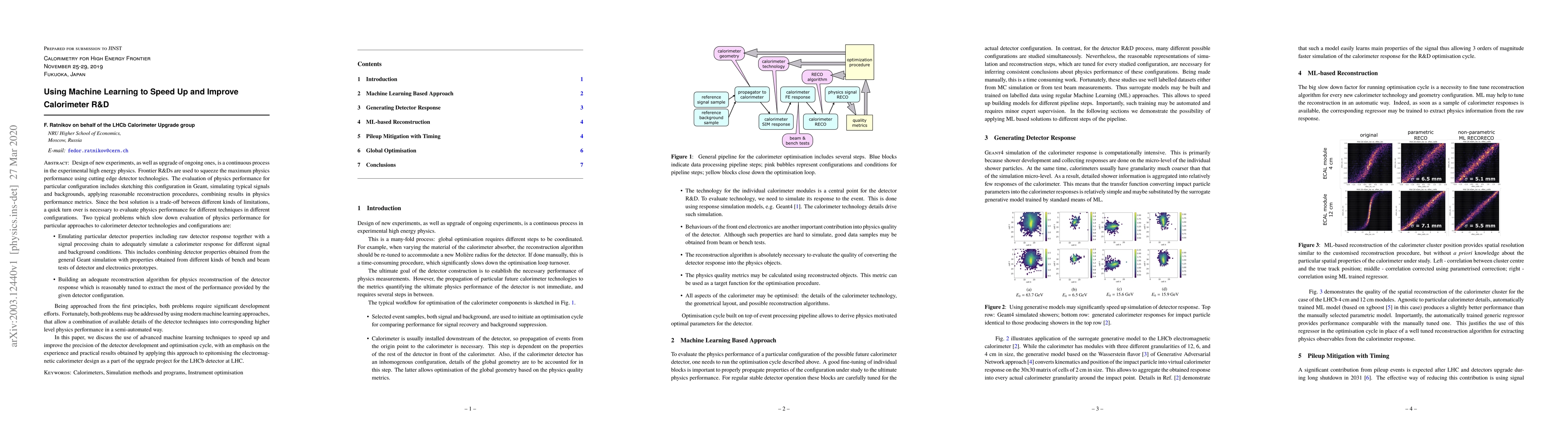 This paper uses machine learning to speed up and improve calorimeter detector research and development, reducing evaluation time for physics performance and improving reconstruction algorithm accuracy.