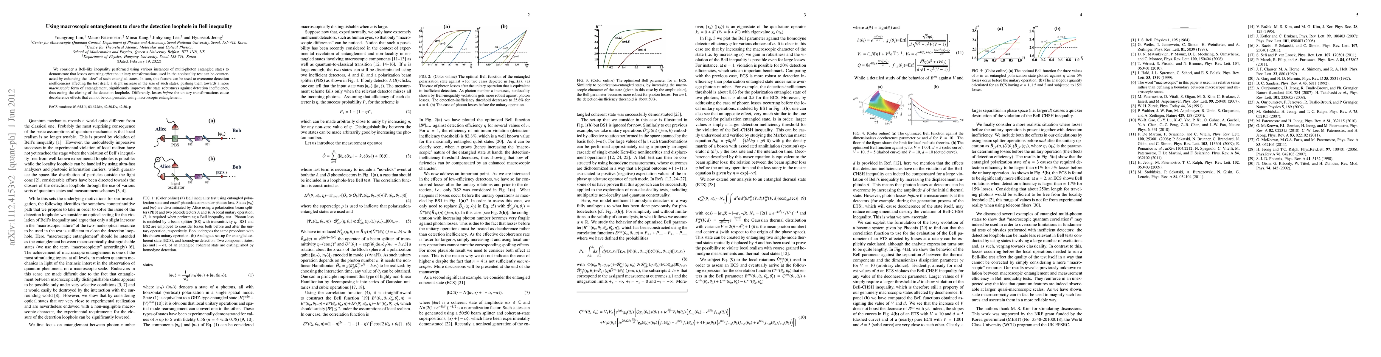 This paper demonstrates that employing macroscopic entanglement in multi-photon states can counteract post-transformation losses, thereby closing the detection loophole in Bell inequality tests. While losses before transformations cause decoherence, macroscopic entanglement enhances robustness against detection inefficiencies.