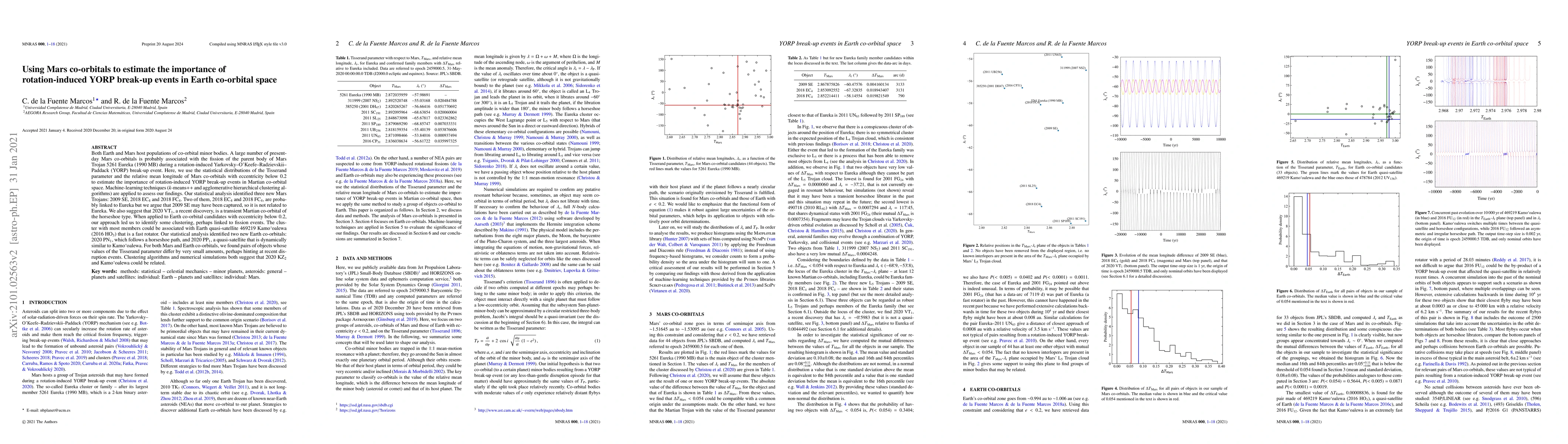 This research uses statistical analysis and machine-learning techniques to estimate the role of YORP break-up events in the formation of Mars co-orbitals, identifying three new Mars Trojans and suggesting links between them and the parent body of Mars Trojan 5261 Eureka. The study also finds clustering in Earth co-orbitals, potentially indicating fission events, and identifies two new Earth co-orbitals, suggesting dynamic similarities to known quasi-satellites.