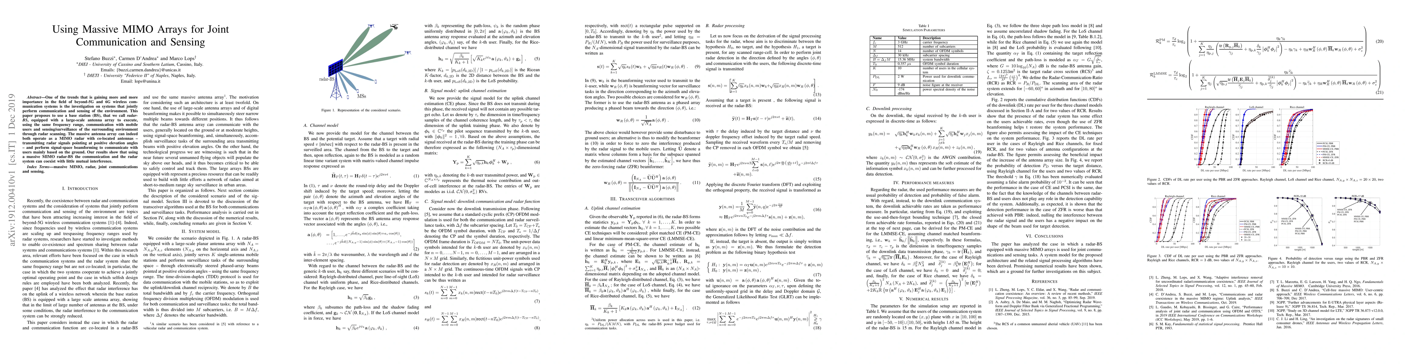 This paper explores the use of a massive MIMO array in a radar-equipped base station to simultaneously perform communication with mobile users and environmental sensing through radar. The results demonstrate that the communication and radar systems can operate effectively with minimal interference.