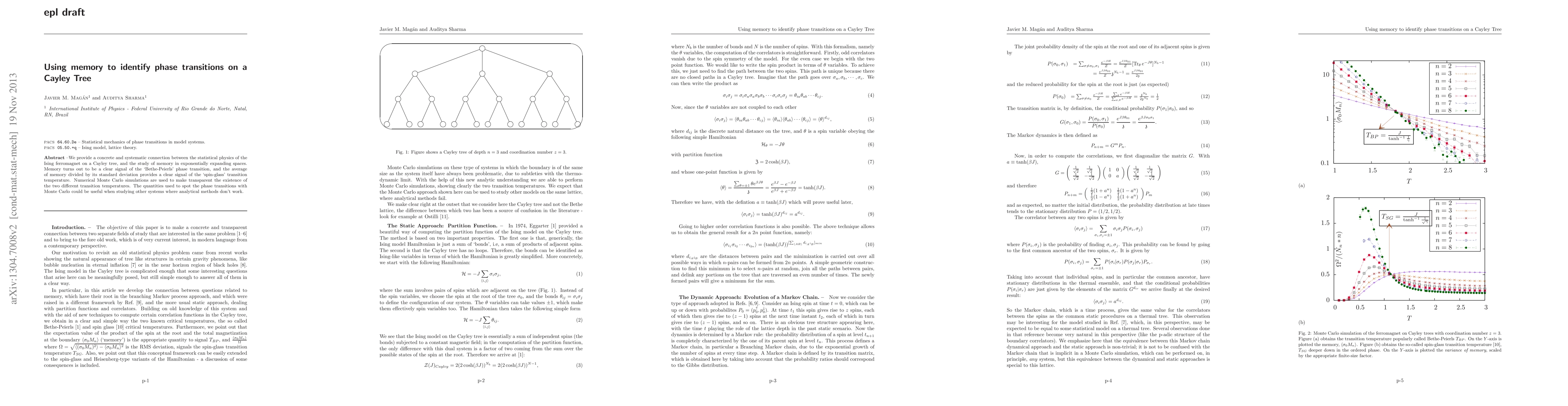 We provide a concrete and systematic connection between the statistical physics of the Ising ferromagnet on a Cayley tree, and the study of memory in exponentially expanding spaces. Memory turns out to be a clear signal of the `Bethe-Peierls' phase transition, and the average of memory divided by its standard deviation provides a clear signal of the `spin-glass' transition temperature. Numerical Monte Carlo simulations are used to make transparent the existence of the two different transition temperatures. The quantities used to spot the phase transitions with Monte Carlo could be useful when studying other systems where analytical methods don't work.