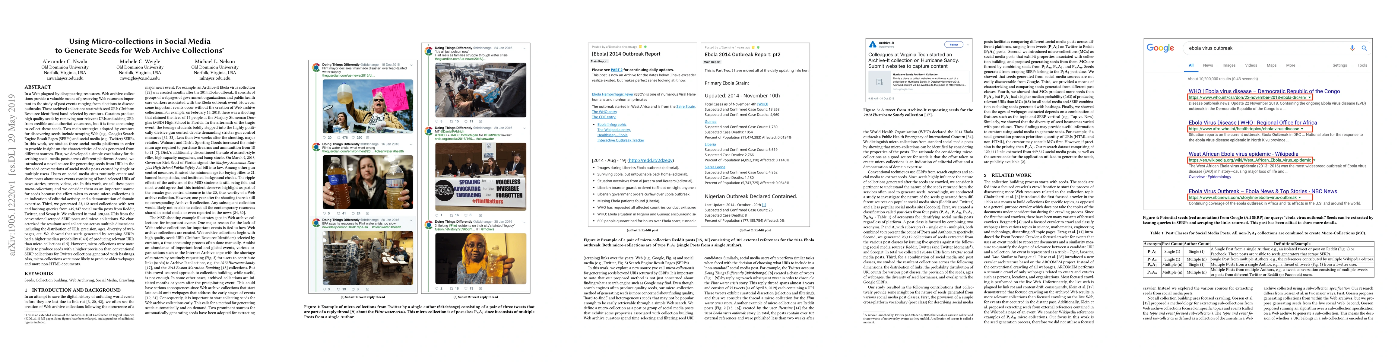 This research explores the use of social media micro-collections—curated posts containing selected URIs—as a source for generating seeds for web archive collections. The study developed a vocabulary for describing these posts and generated 23,112 seed collections from 449,347 posts across Reddit, Twitter, and Scoop.it, highlighting their potential to preserve important web resources.