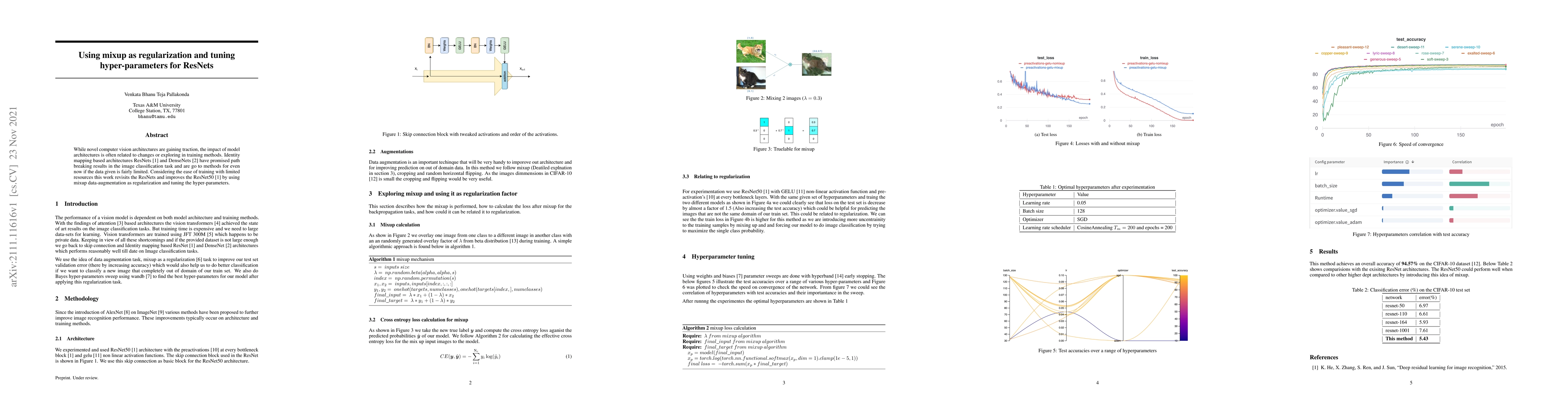 While novel computer vision architectures are gaining traction, the impact of model architectures is often related to changes or exploring in training methods. Identity mapping-based architectures ResNets and DenseNets have promised path-breaking results in the image classification task and are go-to methods for even now if the data given is fairly limited. Considering the ease of training with limited resources this work revisits the ResNets and improves the ResNet50 \cite{resnets} by using mixup data-augmentation as regularization and tuning the hyper-parameters.