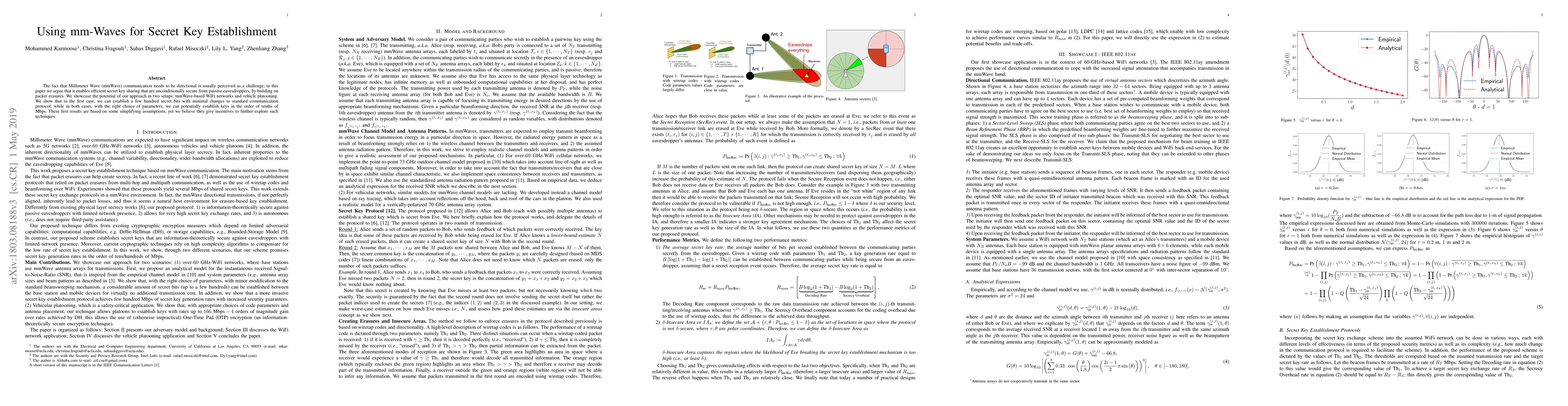 The fact that Millimeter Wave (mmWave) communication needs to be directional is usually perceived as a challenge; in this paper we argue that it enables efficient secret key sharing that are unconditionally secure from passive eavesdroppers, by building on packet erasures. We showcase the potential of our approach in two setups: mmWave-based WiFi networks and vehicle platooning. We show that in the first case, we can establish a few hundred secret bits with minimal changes to standard communication protocol; while in both cases, with the right choice of parameters, we can potentially establish keys in the order of tenths of Mbps. These first results are based on some simplifying assumptions, yet we believe they give incentives to further explore such techniques.