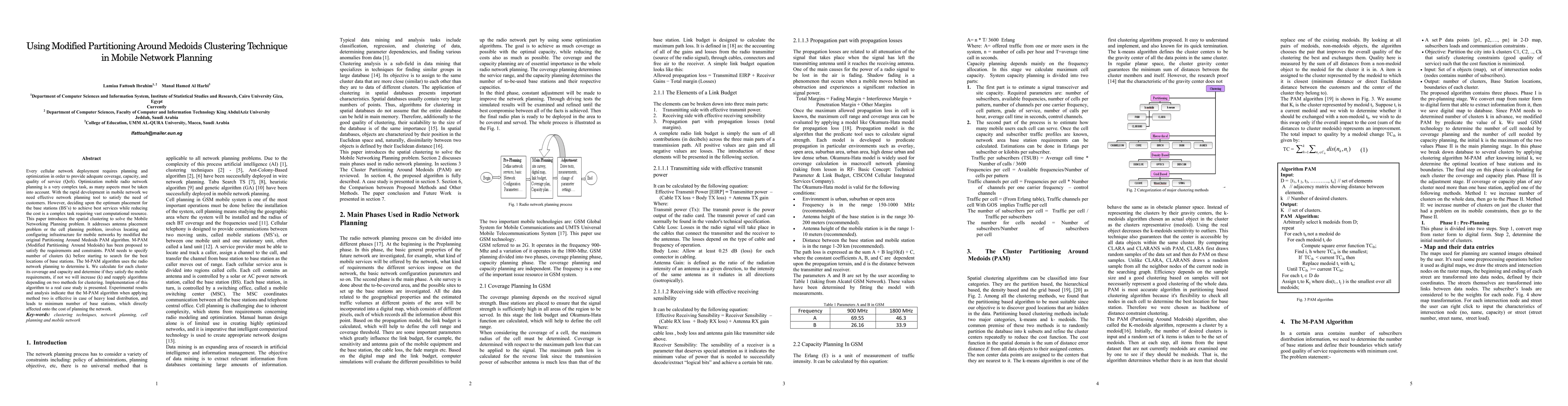 This paper proposes M-PAM, a modified Partitioning Around Medoids (PAM) algorithm for mobile network planning, which determines the optimal number of clusters (k) using radio network planning and minimizes the number of base stations for cost reduction.