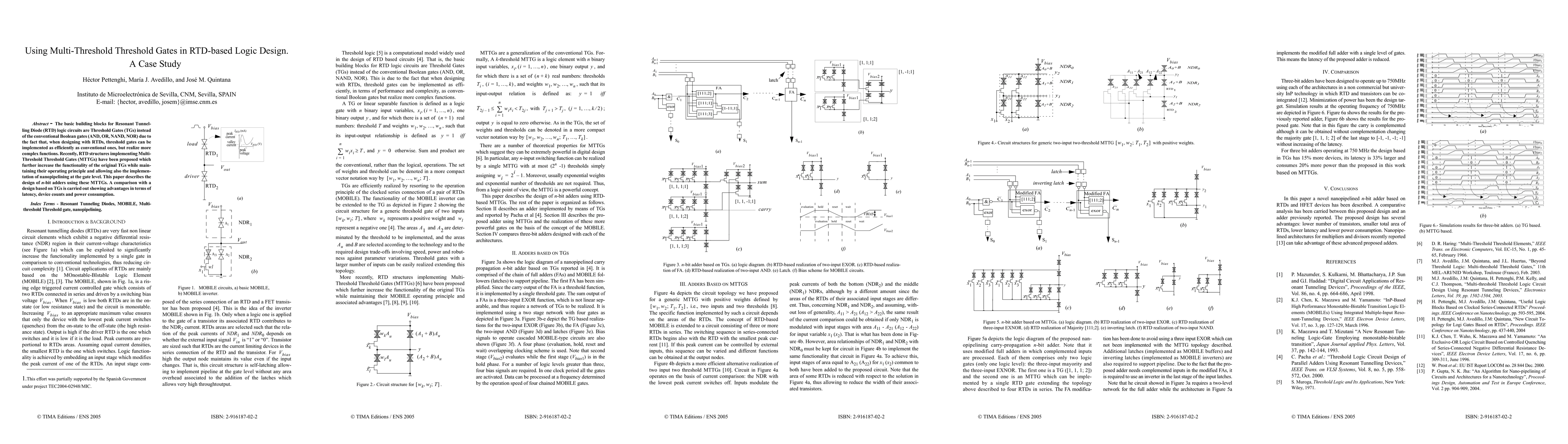 The basic building blocks for Resonant Tunnelling Diode (RTD) logic circuits are Threshold Gates (TGs) instead of the conventional Boolean gates (AND, OR, NAND, NOR) due to the fact that, when designing with RTDs, threshold gates can be implemented as efficiently as conventional ones, but realize more complex functions. Recently, RTD structures implementing Multi-Threshold Threshold Gates (MTTGs) have been proposed which further increase the functionality of the original TGs while maintaining their operating principle and allowing also the implementation of nanopipelining at the gate level. This paper describes the design of n-bit adders using these MTTGs. A comparison with a design based on TGs is carried out showing advantages in terms of latency, device counts and power consumption.