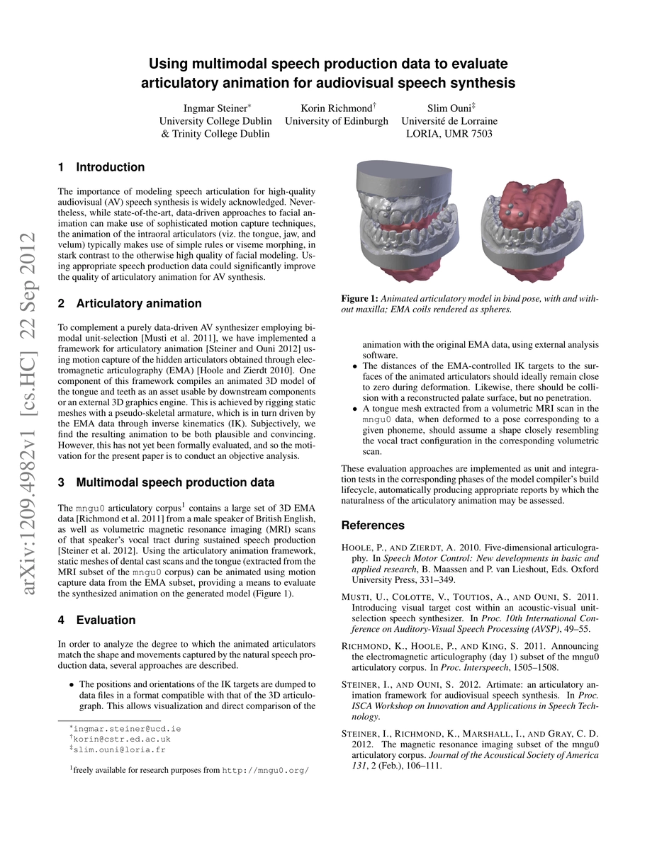 Researchers found that using speech production data can improve the quality of articulatory animation in audiovisual speech synthesis. This could lead to more realistic speech animations and better overall AV synthesis.