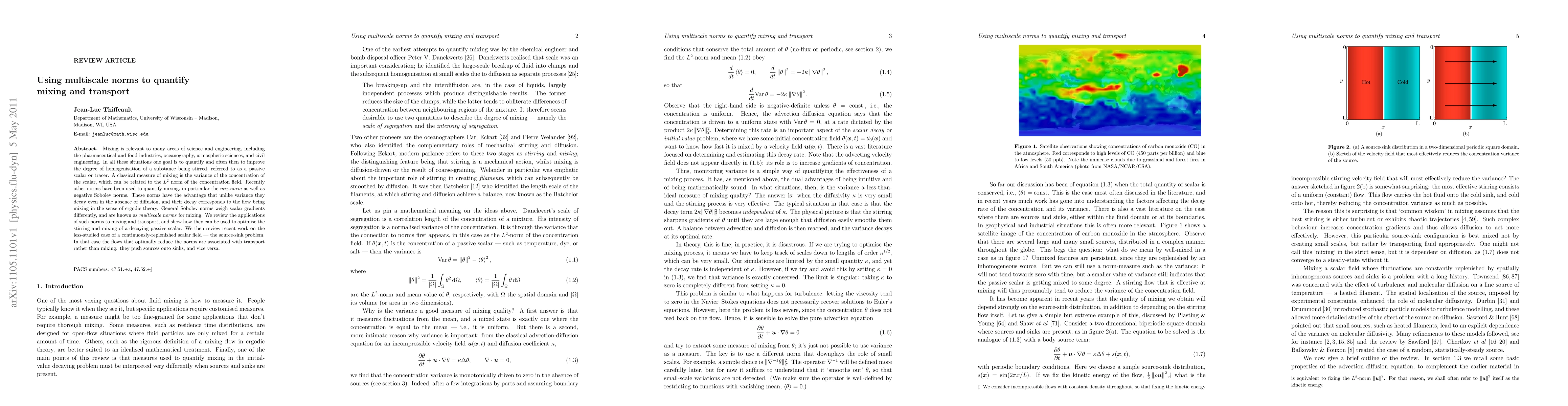 This paper reviews the use of multiscale norms, such as mix-norms and negative Sobolev norms, to quantify mixing and transport processes in various scientific fields. It demonstrates how these norms can optimize stirring and mixing of passive scalars and discusses their application in source-sink problems, highlighting flows that enhance transport rather than mixing.