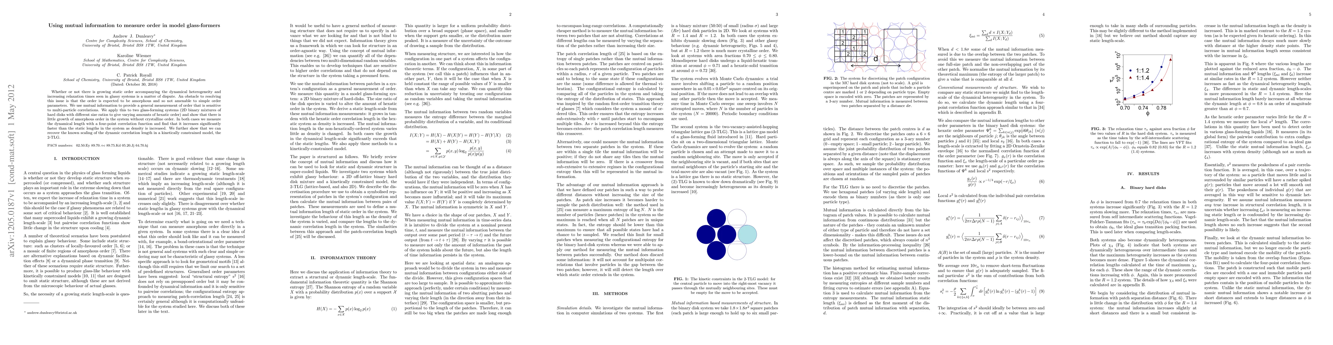Whether or not there is growing static order accompanying the dynamical heterogeneity and increasing relaxation times seen in glassy systems is a matter of dispute. An obstacle to resolving this issue is that the order is expected to be amorphous and so not amenable to simple order parameters. We use mutual information to provide a general measurement of order that is sensitive to multi-particle correlations. We apply this to two glass-forming systems (2D binary mixtures of hard disks with different size ratios to give varying amounts of hexatic order) and show that there is little growth of amorphous order in the system without crystalline order. In both cases we measure the dynamical length with a four-point correlation function and find that it increases significantly faster than the static lengths in the system as density is increased. We further show that we can recover the known scaling of the dynamic correlation length in a kinetically constrained model, the 2-TLG.