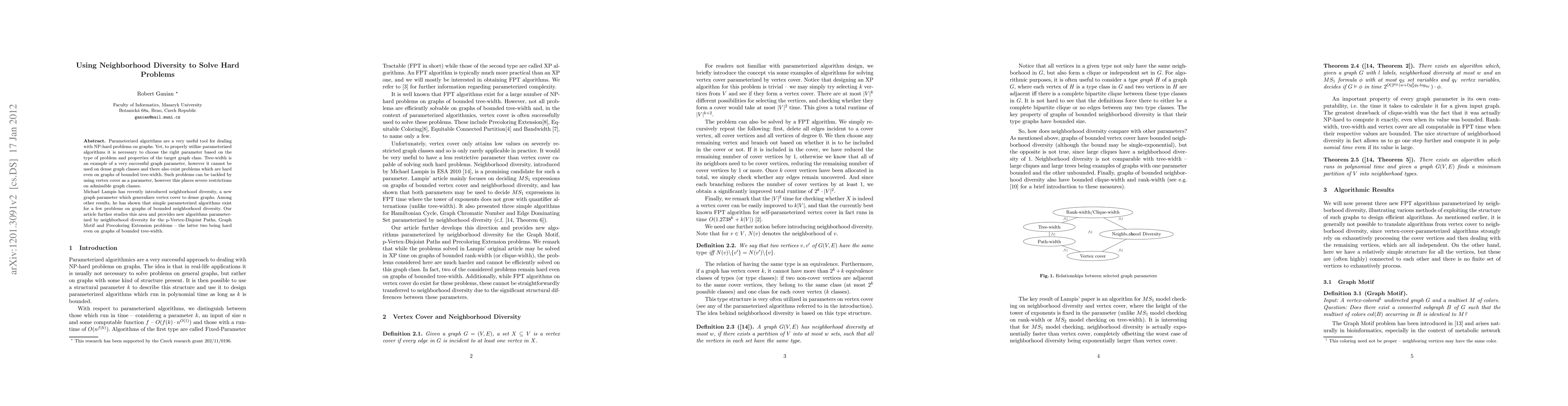 A new graph parameter called neighborhood diversity is used to solve NP-hard problems on graphs, providing a more flexible alternative to traditional parameters like tree-width. New algorithms using neighborhood diversity are developed for specific hard problems.