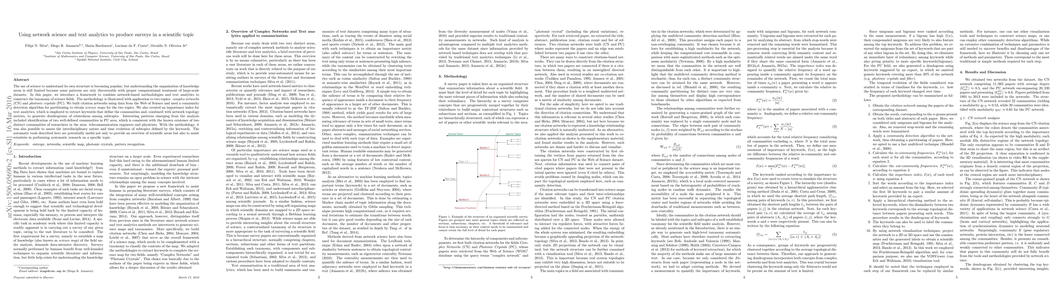 The use of science to understand its own structure is becoming popular, but understanding the organization of knowledge areas is still limited because some patterns are only discoverable with proper computational treatment of large-scale datasets. In this paper, we introduce a network-based methodology combined with text analytics to construct the taxonomy of science fields. The methodology is illustrated with application to two topics: complex networks (CN) and photonic crystals (PC). We built citation networks using data from the Web of Science and used a community detection algorithm for partitioning to obtain science maps of the fields considered. We also created an importance index for text analytics in order to obtain keywords that define the communities. A dendrogram of the relatedness among the subtopics was also obtained. Among the interesting patterns that emerged from the analysis, we highlight the identification of two well-defined communities in PC area, which is consistent with the known existence of two distinct communities of researchers in the area: telecommunication engineers and physicists. With the methodology, it was also possible to assess the interdisciplinary and time evolution of subtopics defined by the keywords. The automatic tools described here are potentially useful not only to provide an overview of scientific areas but also to assist scientists in performing systematic research on a specific topic.