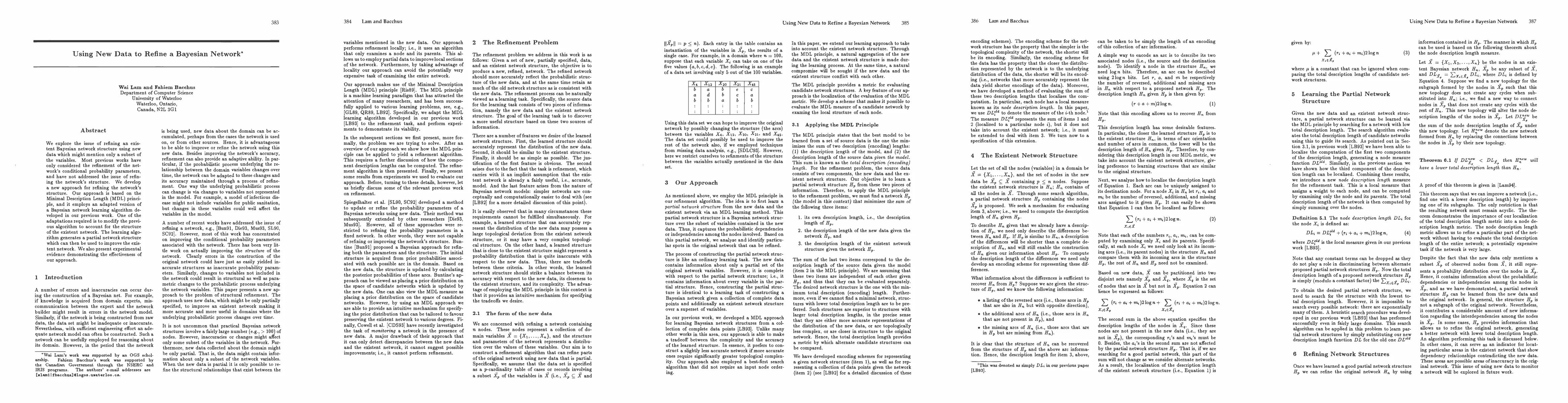 Researchers develop a new approach to refine Bayesian network structures using Minimal Description Length (MDL) principle and adapt a learning algorithm to improve existing networks with limited new data.
