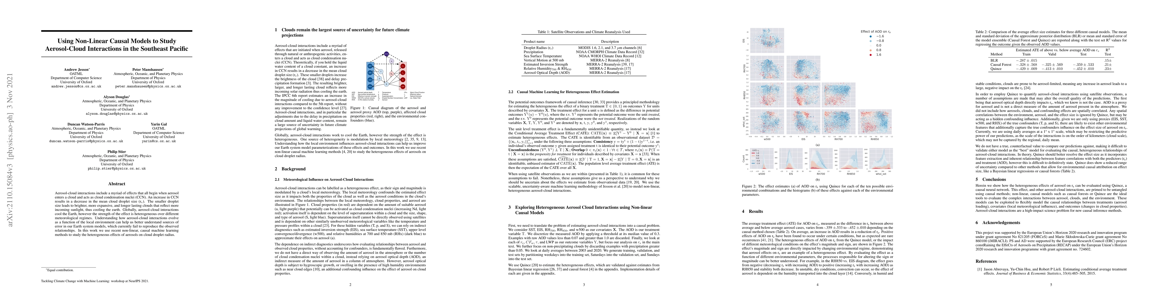 Researchers used non-linear causal machine learning methods to study how aerosols affect cloud droplet size in the Southeast Pacific, finding complex relationships between local environment and cooling effects on Earth. The findings aim to improve understanding of errors in Earth system models that struggle to replicate observed relationships.