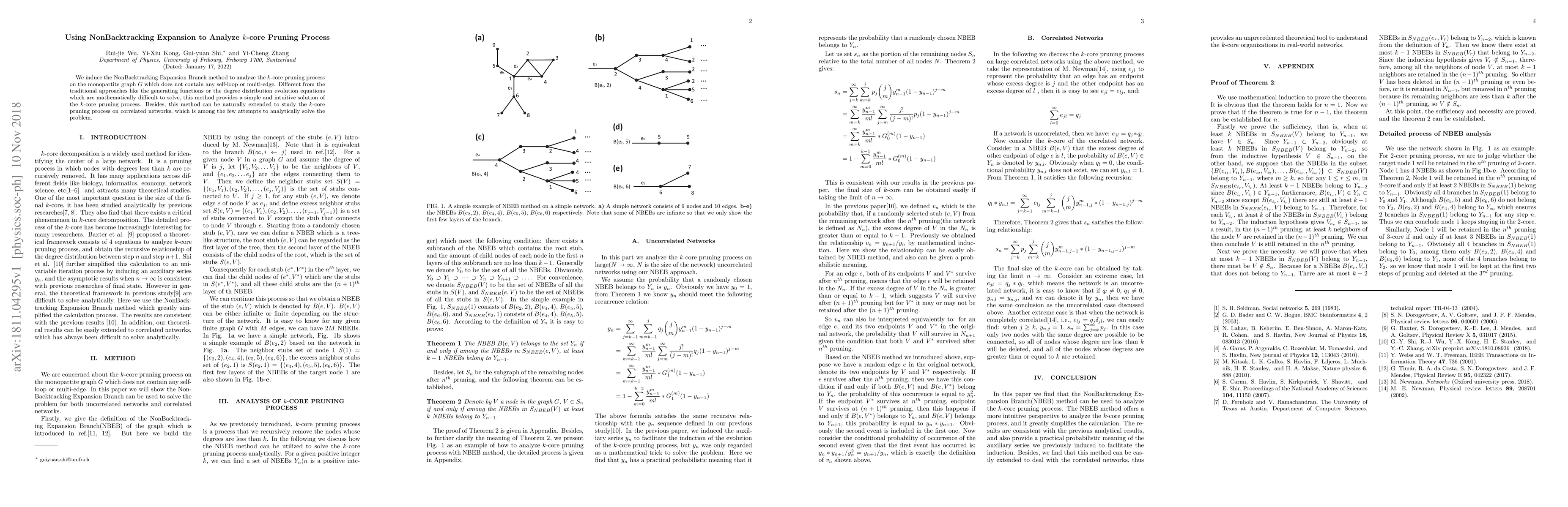 We induce the NonBacktracking Expansion Branch method to analyze the k-core pruning process on the monopartite graph G which does not contain any self-loop or multi-edge. Different from the traditional approaches like the generating functions or the degree distribution evolution equations which are mathematically difficult to solve, this method provides a simple and intuitive solution of the k-core pruning process. Besides, this method can be naturally extended to study the k-core pruning process on correlated networks, which is among the few attempts to analytically solve the problem.