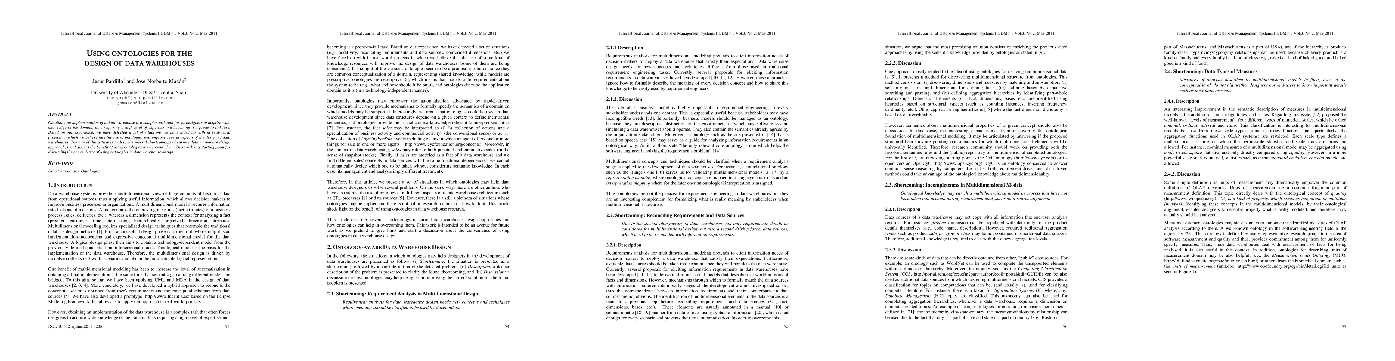 Obtaining an implementation of a data warehouse is a complex task that forces designers to acquire wide knowledge of the domain, thus requiring a high level of expertise and becoming it a prone-to-fail task. Based on our experience, we have detected a set of situations we have faced up with in real-world projects in which we believe that the use of ontologies will improve several aspects of the design of data warehouses. The aim of this article is to describe several shortcomings of current data warehouse design approaches and discuss the benefit of using ontologies to overcome them. This work is a starting point for discussing the convenience of using ontologies in data warehouse design.