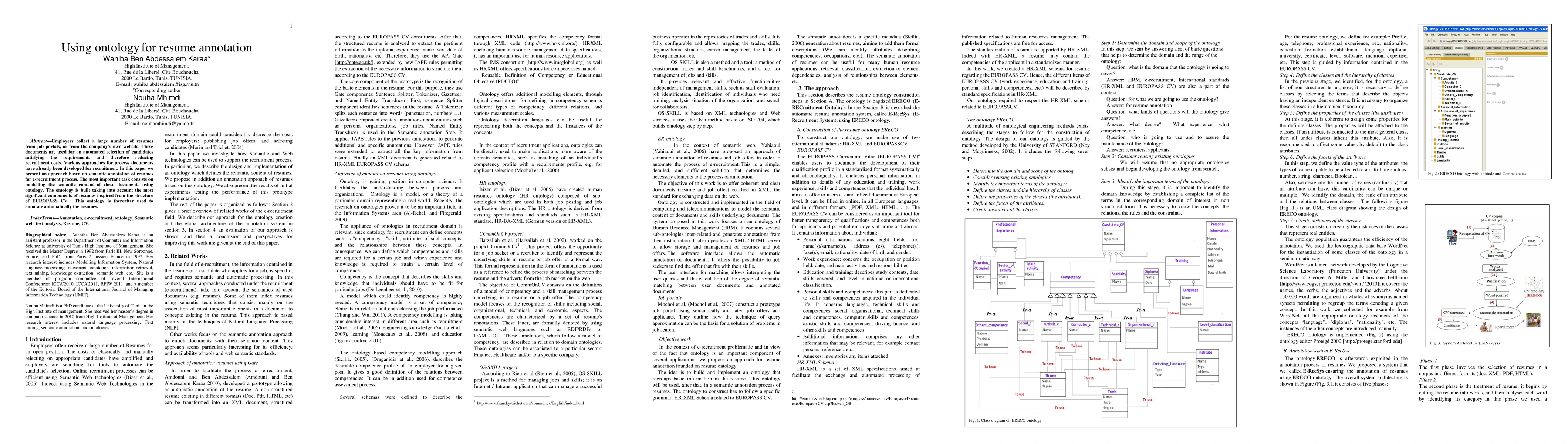 This paper proposes a method for automating the recruitment process by semantically annotating resumes using an ontology modeled after the EUROPASS CV structure, aiming to improve the selection of candidates and reduce recruitment costs. The ontology is used to automatically annotate resumes, facilitating better matching with job requirements.