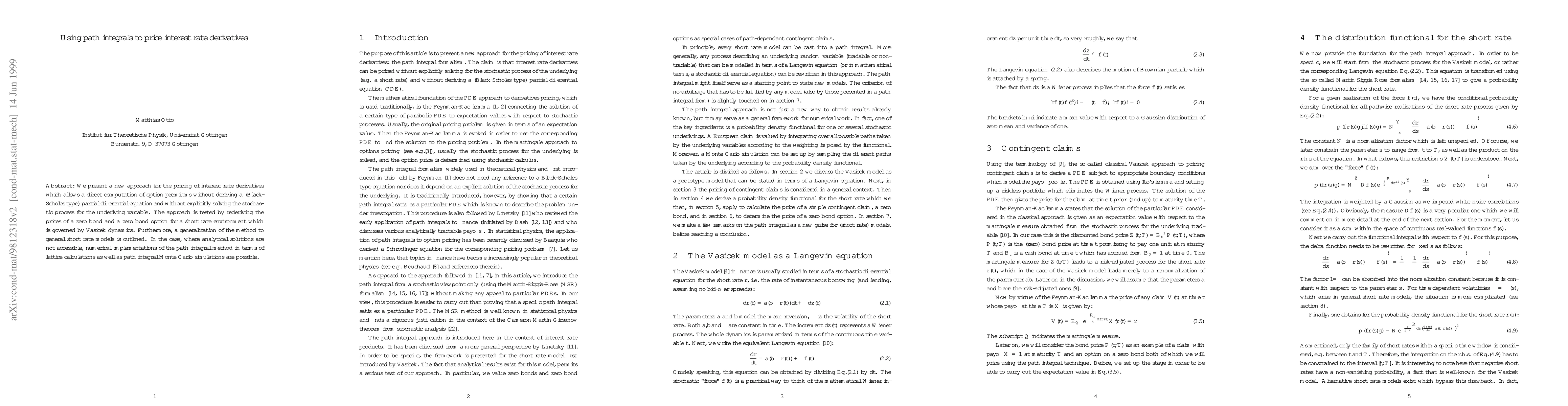 We present a new approach for the pricing of interest rate derivatives which allows a direct computation of option premiums without deriving a (Black-Scholes type) partial differential equation and without explicitly solving the stochastic process for the underlying variable. The approach is tested by rederiving the prices of a zero bond and a zero bond option for a short rate environment which is governed by Vasicek dynamics. Furthermore, a generalization of the method to general short rate models is outlined. In the case, where analytical solutions are not accessible, numerical implementations of the path integral method in terms of lattice calculations as well as path integral Monte Carlo simulations are possible.
