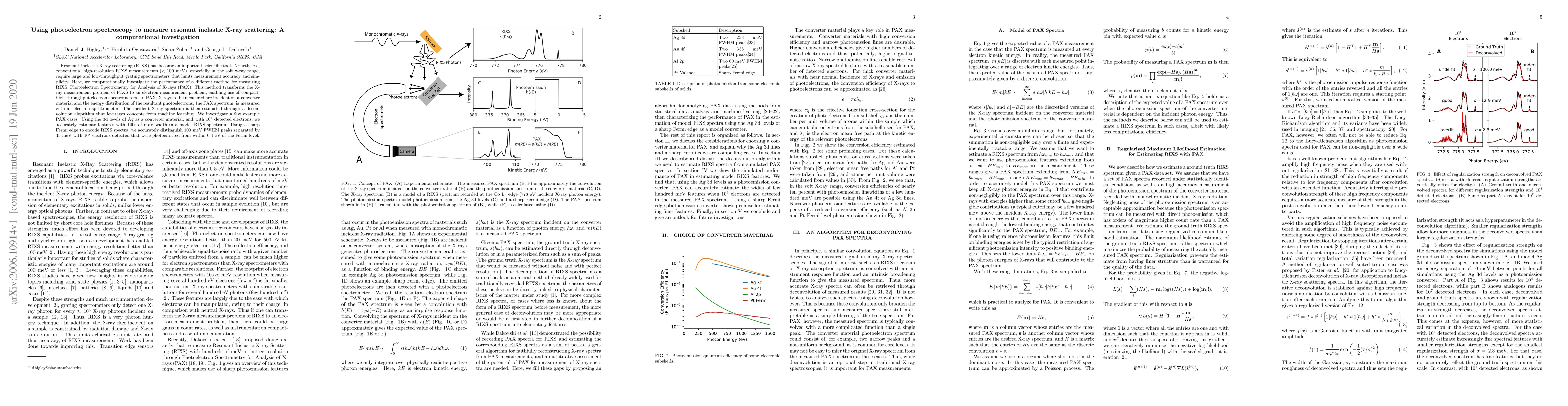 Resonant inelastic X-ray scattering (RIXS) has become an important scientific tool. Nonetheless, conventional high-resolution RIXS measurements (<100 meV), especially in the soft x-ray range, require large and low-throughput grating spectrometers that limits measurement accuracy and simplicity. Here, we computationally investigate the performance of a different method for measuring RIXS, Photoelectron Spectrometry for Analysis of X-rays (PAX). This method transforms the X-ray measurement problem of RIXS to an electron measurement problem, enabling use of compact, high-throughput electron spectrometers. In PAX, X-rays to be measured are incident on a converter material and the energy distribution of the resultant photoelectrons, the PAX spectrum, is measured with an electron spectrometer. The incident X-ray spectrum is then estimated through a deconvolution algorithm that leverages concepts from machine learning. We investigate a few example PAX cases. Using the 3d levels of Ag as a converter material, and with 10$^5$ detected electrons, we accurately estimate features with 100s of meV width in a model RIXS spectrum. Using a sharp Fermi edge to encode RIXS spectra, we accurately distinguish 100 meV FWHM peaks separated by 45 meV with 10$^7$ electrons detected that were photoemitted from within 0.4 eV of the Fermi level.