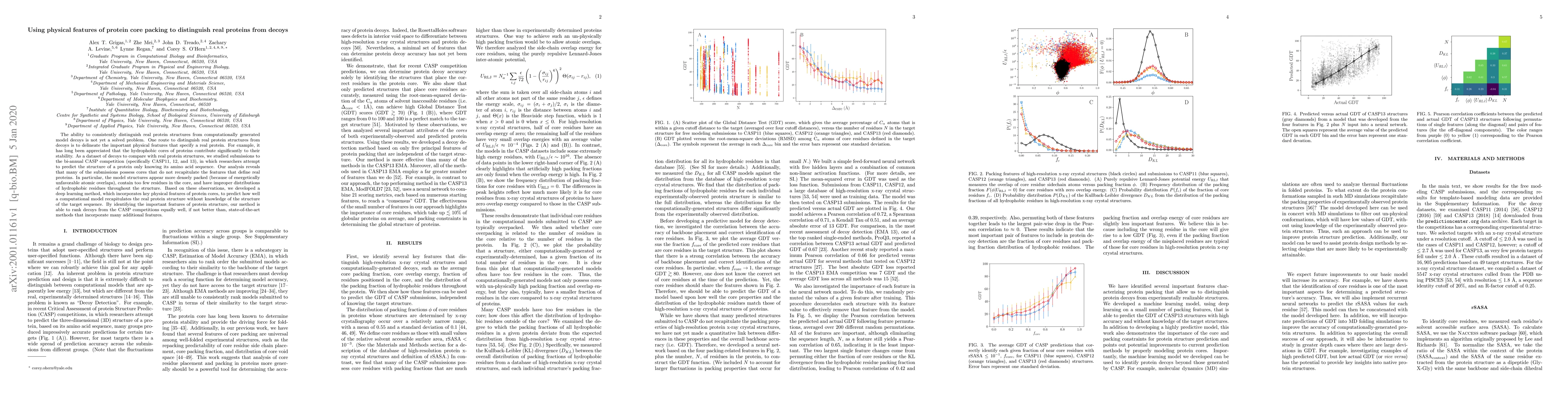 The ability to consistently distinguish real protein structures from computationally generated model decoys is not yet a solved problem. One route to distinguish real protein structures from decoys is to delineate the important physical features that specify a real protein. For example, it has long been appreciated that the hydrophobic cores of proteins contribute significantly to their stability. As a dataset of decoys to compare with real protein structures, we studied submissions to the bi-annual CASP competition (specifically CASP11, 12, and 13), in which researchers attempt to predict the structure of a protein only knowing its amino acid sequence. Our analysis reveals that many of the submissions possess cores that do not recapitulate the features that define real proteins. In particular, the model structures appear more densely packed (because of energetically unfavorable atomic overlaps), contain too few residues in the core, and have improper distributions of hydrophobic residues throughout the structure. Based on these observations, we developed a deep learning method, which incorporates key physical features of protein cores, to predict how well a computational model recapitulates the real protein structure without knowledge of the structure of the target sequence. By identifying the important features of protein structure, our method is able to rank decoys from the CASP competitions equally well, if not better than, state-of-the-art methods that incorporate many additional features.