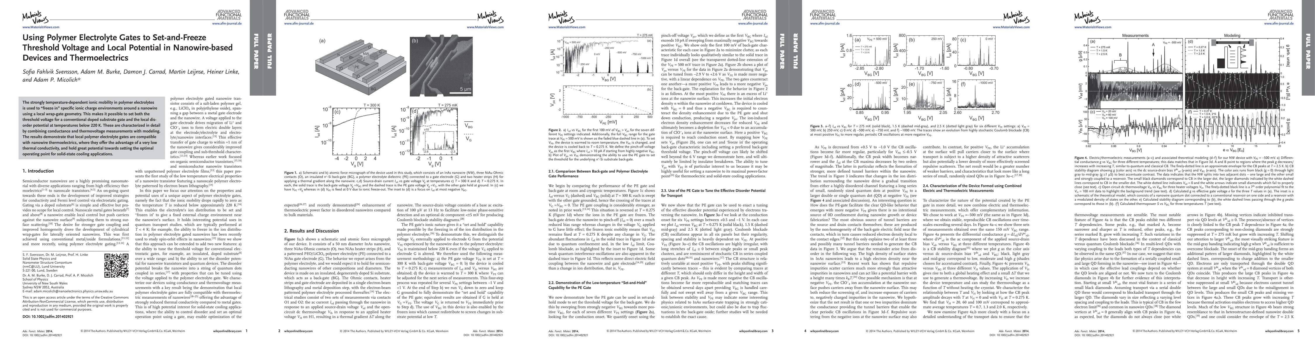 This paper explores the use of polymer electrolyte gates to precisely set the threshold voltage and local potential in nanowire-based devices and thermoelectrics by leveraging the temperature-dependent ionic mobility in polymer electrolytes. The study demonstrates the feasibility of achieving these settings at low temperatures, highlighting the potential for optimizing solid-state cooling applications.