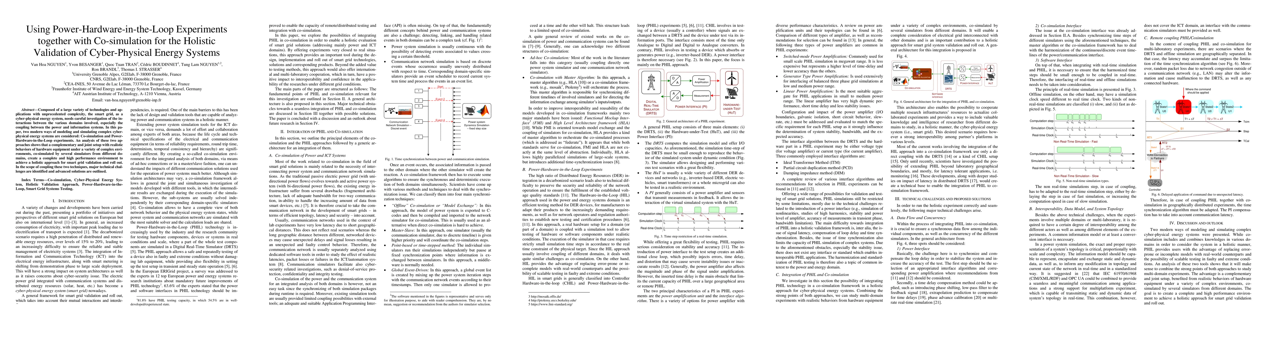 Composed of a large variety of technologies and applications with unprecedented complexity, the smart grid, as a cyber-physical energy system, needs careful investigation of the interactions between the various domains involved, especially the coupling between the power and information systems. In this paper, two modern ways of modeling and simulating complex cyber-physical energy systems are considered: Co-simulation and Power-Hardware-in-the-Loop experiments. An analysis of these two approaches shows that a complementary and joint setup with realistic behaviors of hardware equipment under a variety of complex environments, co-simulated by several simulators from different domains, create a complete and high performance environment to achieve a holistic approach for smart grid validation and roll out. In the scope of coupling these two techniques, major technical challenges are identified and advanced solutions are outlined.