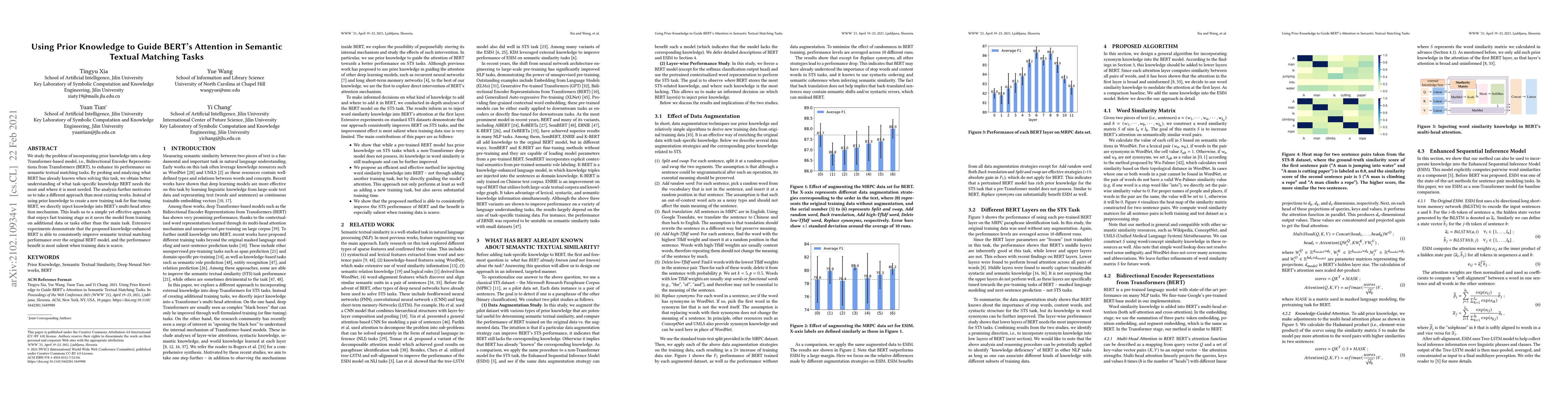 This paper explores integrating prior knowledge directly into BERT's multi-head attention mechanism to enhance semantic textual matching performance. The approach improves BERT's performance without requiring additional training tasks, showing notable benefits especially with limited training data.