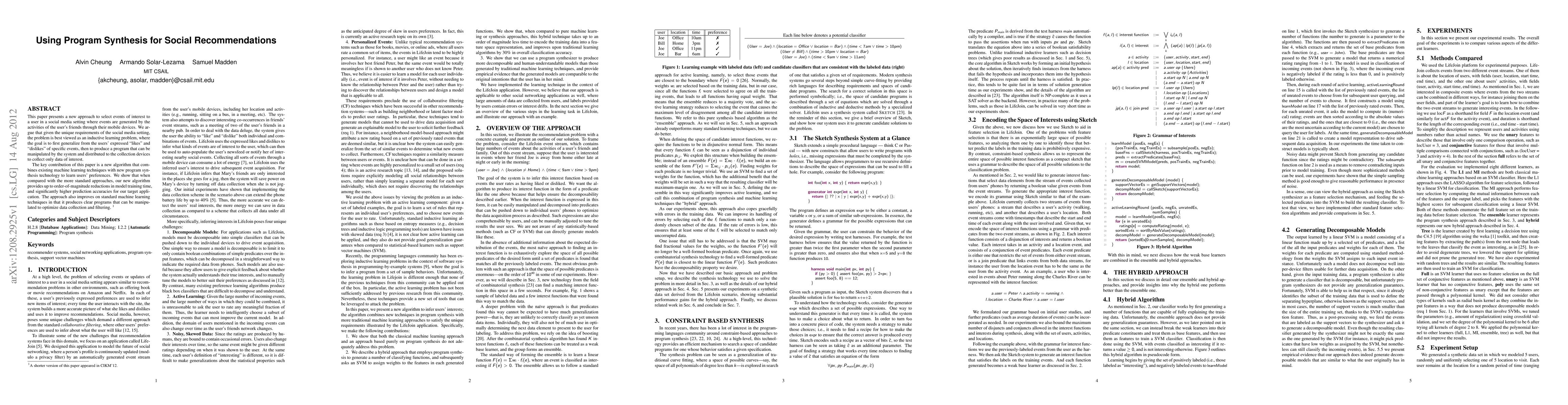 A new algorithm combines machine learning with program synthesis to learn users' preferences for social media event recommendations, achieving up to order-of-magnitude reductions in training time and higher prediction accuracies.