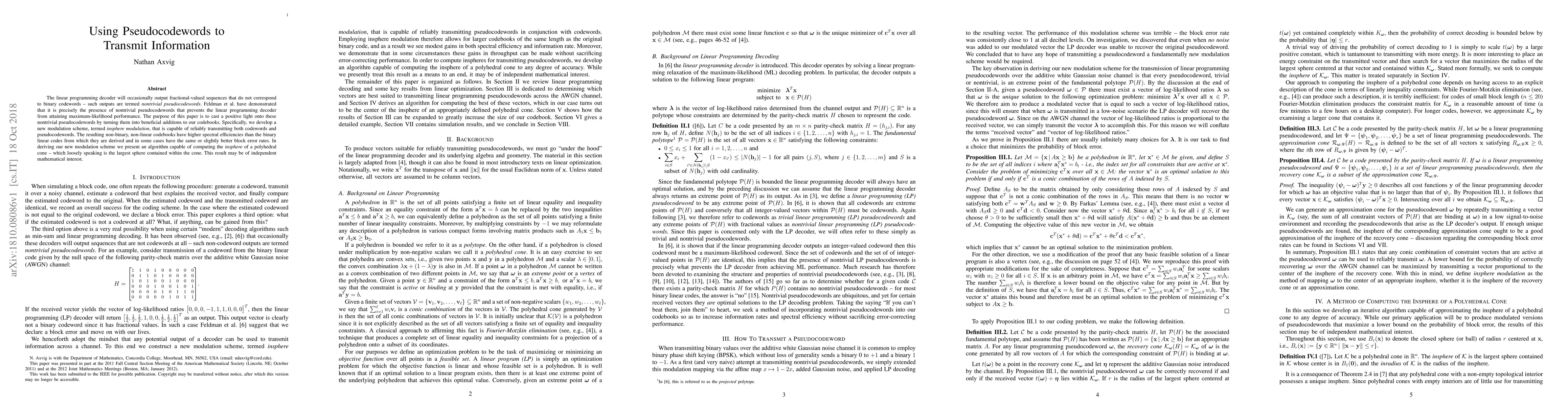 The linear programming decoder will occasionally output fractional-valued sequences that do not correspond to binary codewords - such outputs are termed nontrivial pseudocodewords. Feldman et al. have demonstrated that it is precisely the presence of nontrivial pseudocodewords that prevents the linear programming decoder from attaining maximum-likelihood performance. The purpose of this paper is to cast a positive light onto these nontrivial pseudocodewords by turning them into beneficial additions to our codebooks. Specifically, we develop a new modulation scheme, termed insphere modulation, that is capable of reliably transmitting both codewords and pseudocodewords. The resulting non-binary, non-linear codebooks have higher spectral efficiencies than the binary linear codes from which they are derived and in some cases have the same or slightly better block error rates. In deriving our new modulation scheme we present an algorithm capable of computing the insphere of a polyhedral cone - which loosely speaking is the largest sphere contained within the cone. This result may be of independent mathematical interest.