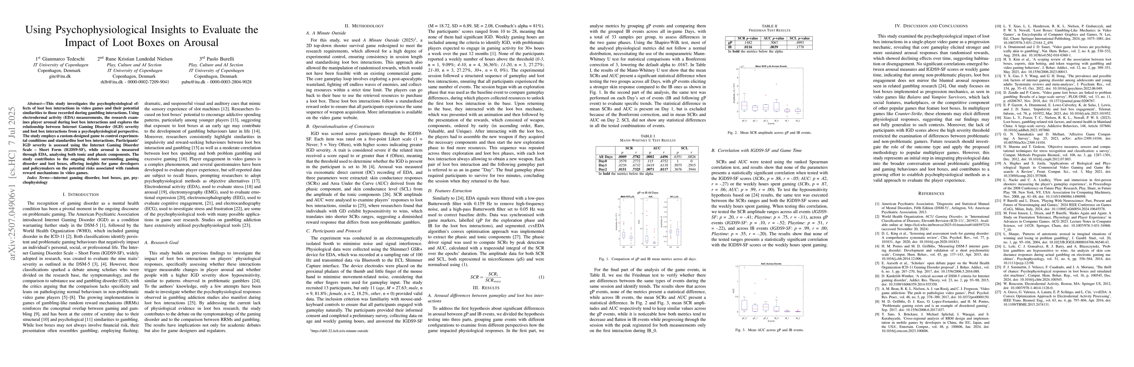 This study investigates the psychophysiological effects of loot box interactions in video games and their potential similarities to those recorded during gambling interactions. Using electrodermal activity (EDA) measurements, the research examines player arousal during loot box interactions and explores the relationship between Internet Gaming Disorder (IGD) severity and loot box interactions from a psychophysiological perspective. The study employs a custom-designed game to control experimental conditions and standardise loot box interactions. Participants' IGD severity is assessed using the Internet Gaming Disorder Scale - Short Form (IGDS9-SF), while arousal is measured through EDA, analysing both tonic and phasic components. The study contributes to the ongoing debate surrounding gaming disorder and loot boxes, offering insights for game developers and policymakers on the potential risks associated with random reward mechanisms in video games.