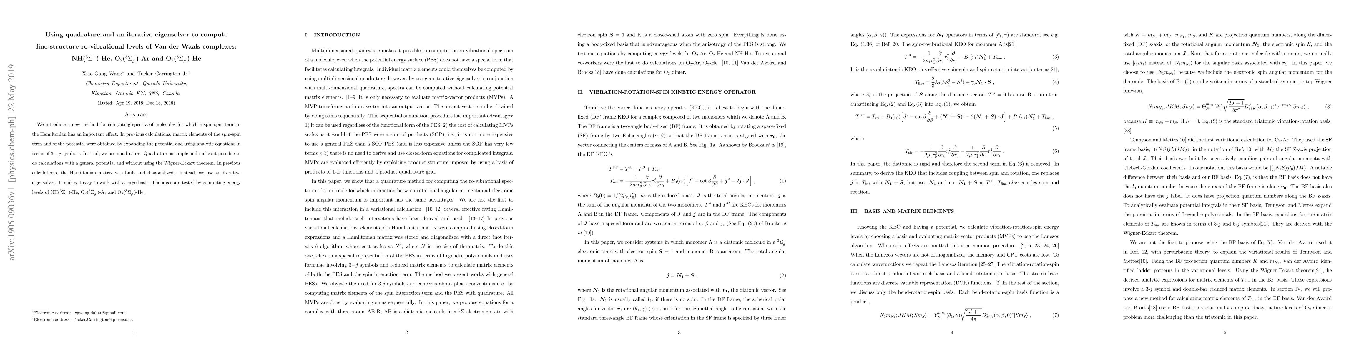 We introduce a new method for computing spectra of molecules for which a spin-spin term in the Hamiltonian has an important effect. In previous calculations, matrix elements of the spin-spin term and of the potential were obtained by expanding the potential and using analytic equations in terms of $ 3-j $ symbols. Instead, we use quadrature. Quadrature is simple and makes it possible to do calculations with a general potential and without using the Wigner-Eckart theorem. In previous calculations, the Hamiltonian matrix was built and diagonalized. Instead, we use an iterative eigensolver. It makes it easy to work with a large basis. The ideas are tested by computing energy levels of NH($^3\Sigma^-$)-He, O$_2$($^3\Sigma^-_g$)-Ar and O$_2$($^3\Sigma^-_g$)-He.