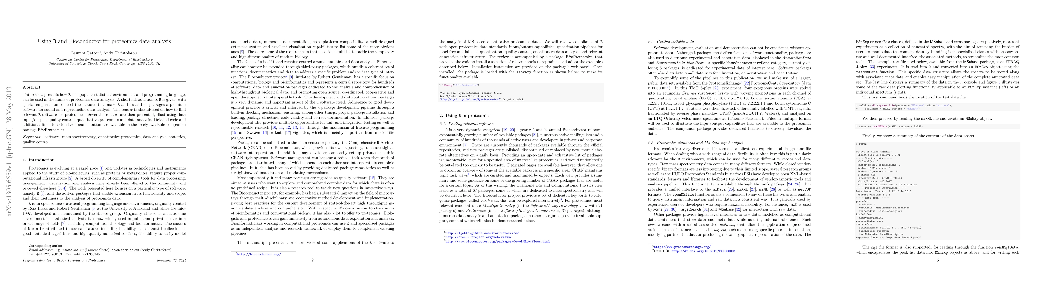 This review demonstrates how R can be used for proteomics data analysis, highlighting its features and applications in quality control, quantitative proteomics, and data analysis, providing a comprehensive guide for researchers.