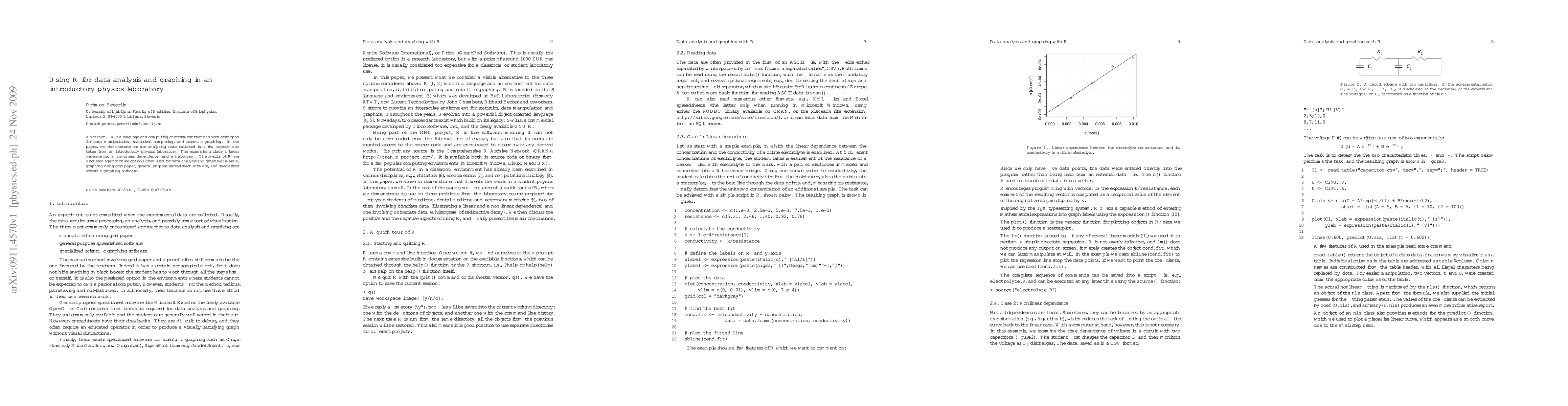 This paper demonstrates the use of R for data analysis and graphing in an introductory physics lab, showcasing its advantages over manual graphing, spreadsheets, and specialized software through examples of linear and non-linear data analysis and histograms. The study highlights R's efficiency and flexibility in scientific data manipulation.