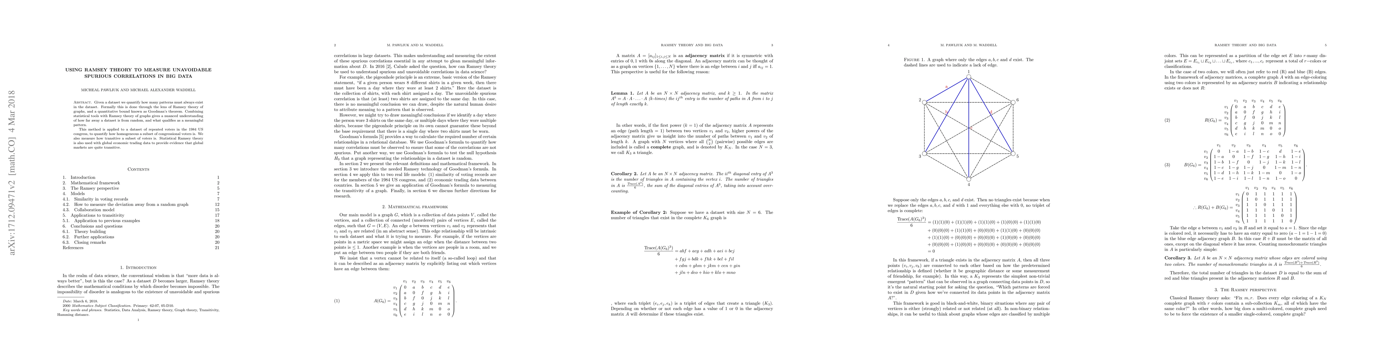 Given a dataset we quantify how many patterns must always exist in the dataset. Formally this is done through the lens of Ramsey theory of graphs, and a quantitative bound known as Goodman's theorem. Combining statistical tools with Ramsey theory of graphs gives a nuanced understanding of how far away a dataset is from random, and what qualifies as a meaningful pattern. This method is applied to a dataset of repeated voters in the 1984 US congress, to quantify how homogeneous a subset of congressional voters is. We also measure how transitive a subset of voters is. Statistical Ramsey theory is also used with global economic trading data to provide evidence that global markets are quite transitive.