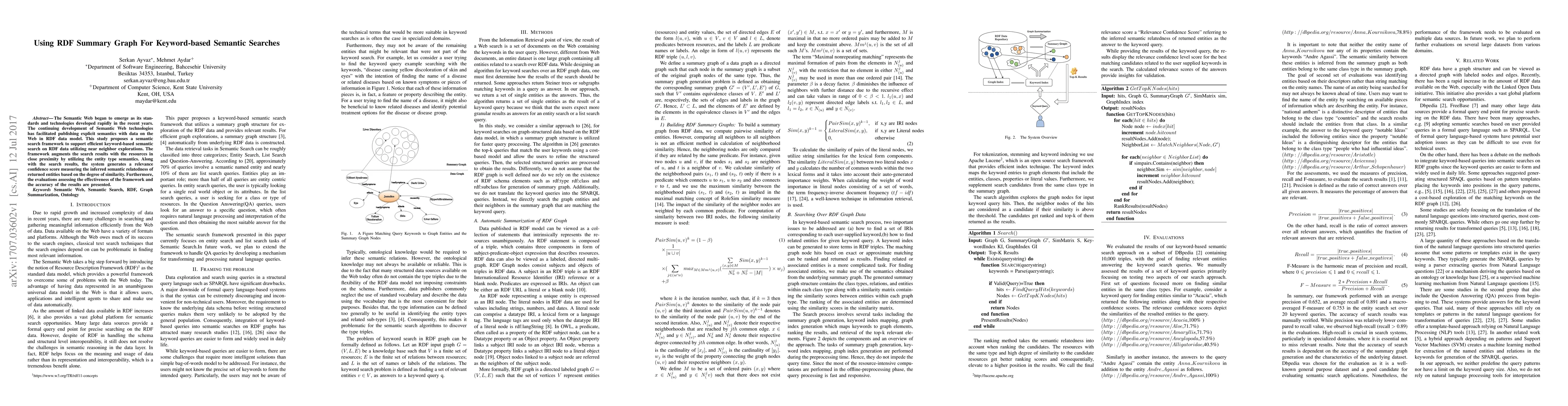 This paper proposes a semantic search framework for efficient keyword-based searches on RDF data, utilizing near neighbor explorations and entity type semantics to augment search results. The framework also generates relevance confidence scores for the inferred semantic relatedness of returned entities.