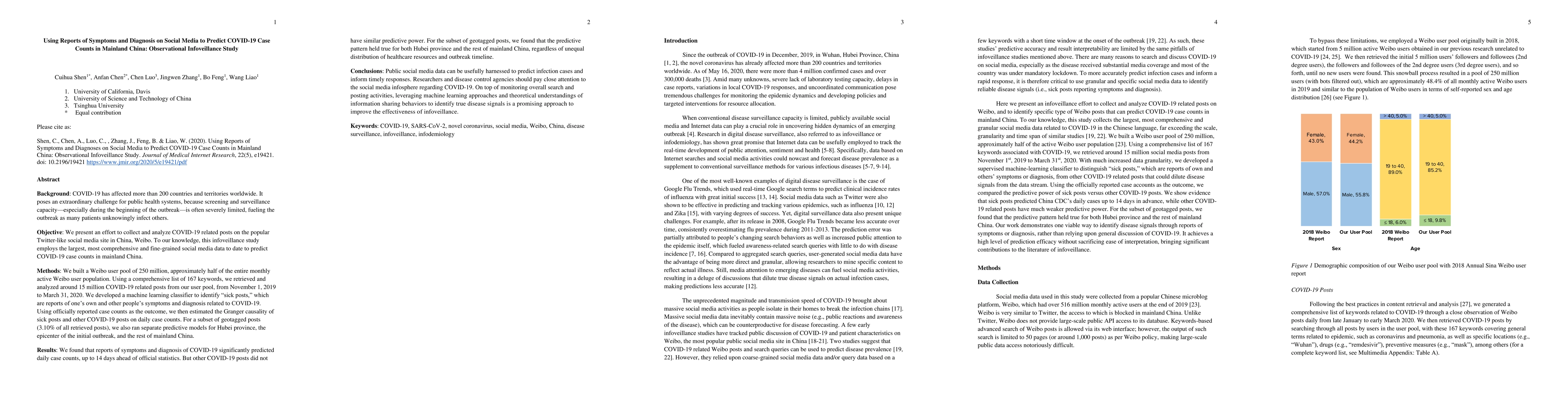This study utilized machine learning to analyze 15 million COVID-19-related posts on Weibo, finding that reports of symptoms and diagnosis significantly predicted daily case counts up to 14 days ahead of official statistics, while other COVID-19 posts did not. Researchers should monitor social media for early signals of COVID-19 outbreaks.