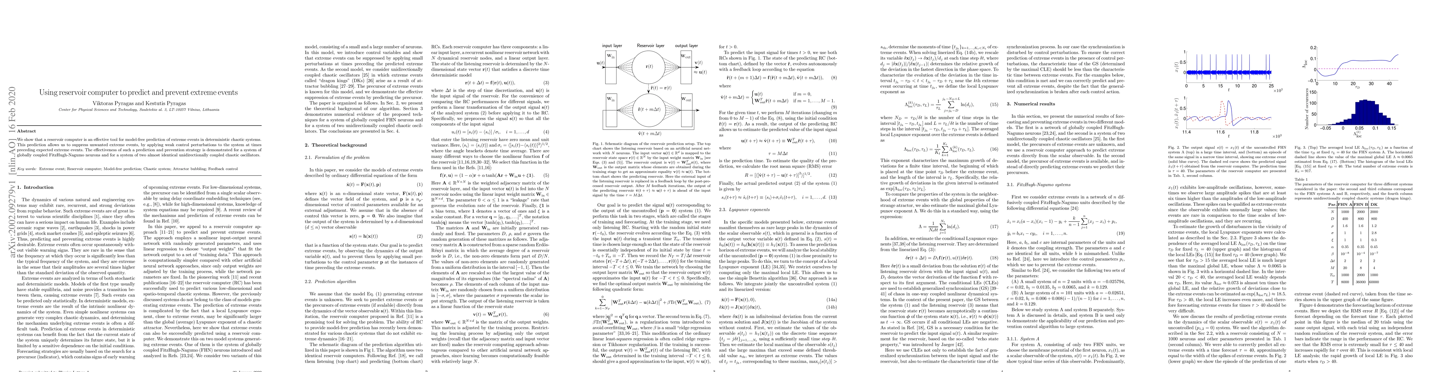 This paper demonstrates that reservoir computers can predict extreme events in chaotic systems without a predefined model, enabling the suppression of these events through timely control perturbations. The method is successfully applied to coupled FitzHugh-Nagumo neurons and coupled chaotic oscillators.