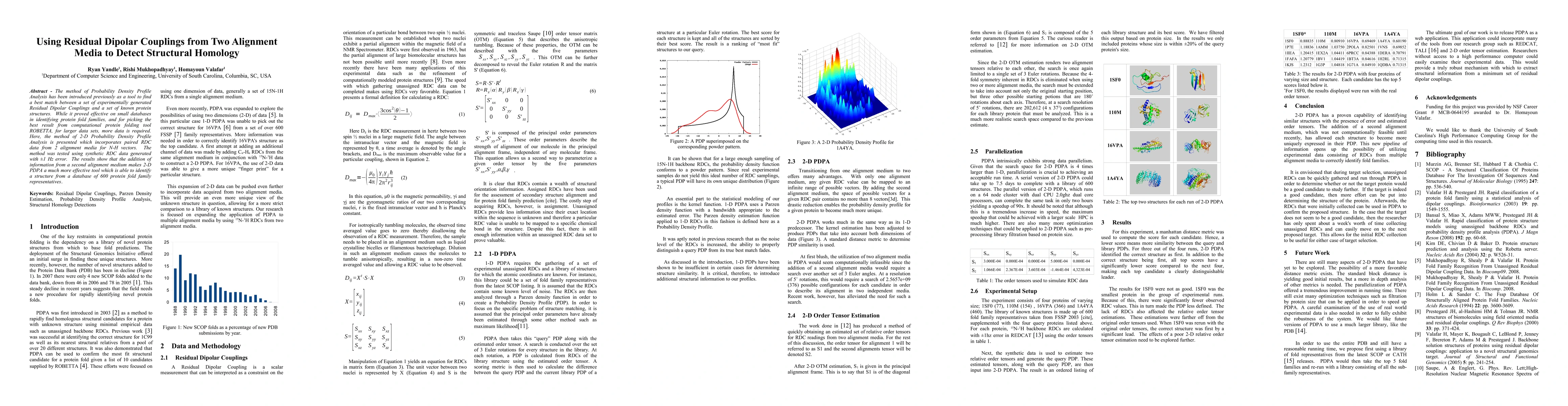 This paper introduces a 2-D Probability Density Profile Analysis method that uses paired Residual Dipolar Couplings (RDC) data from two alignment media to enhance the identification of protein structural homology. The method significantly improves the detection of protein fold families from larger databases, demonstrating effectiveness with synthetic data.