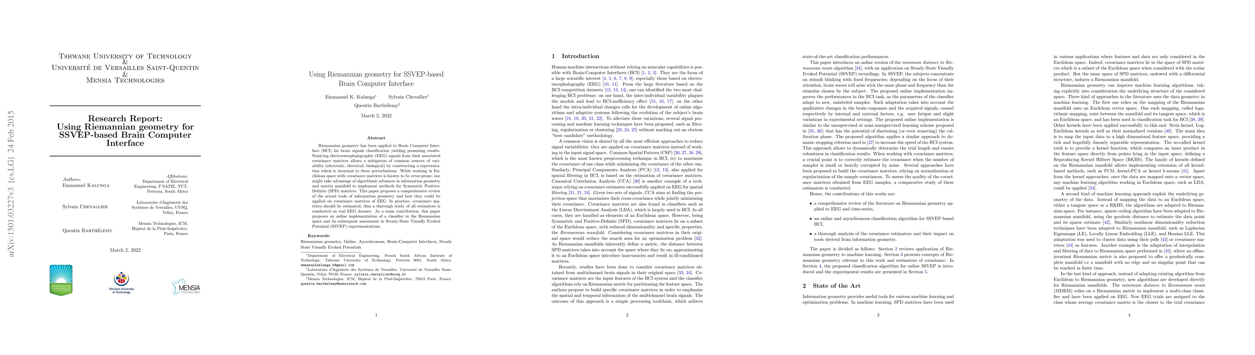 This paper reviews the application of Riemannian geometry to Brain Computer Interfaces (BCI) for classifying brain signals, focusing on the use of Symmetric Positive-Definite matrices in the context of EEG covariance matrices. The study proposes an online classifier implemented in Riemannian space and evaluates its performance in SSVEP experiments.