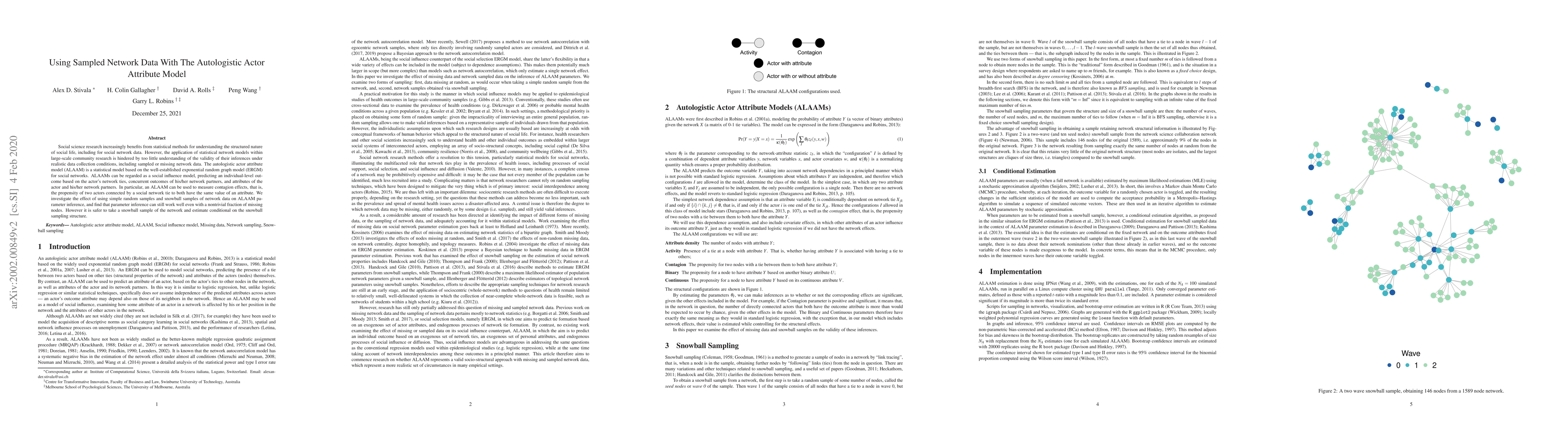 This paper examines the application of the Autologistic Actor Attribute Model (ALAAM) to sampled network data, finding that ALAAM can still yield valid inferences even with significant missing data. It recommends snowball sampling as a more reliable method for network data collection under sampling conditions.