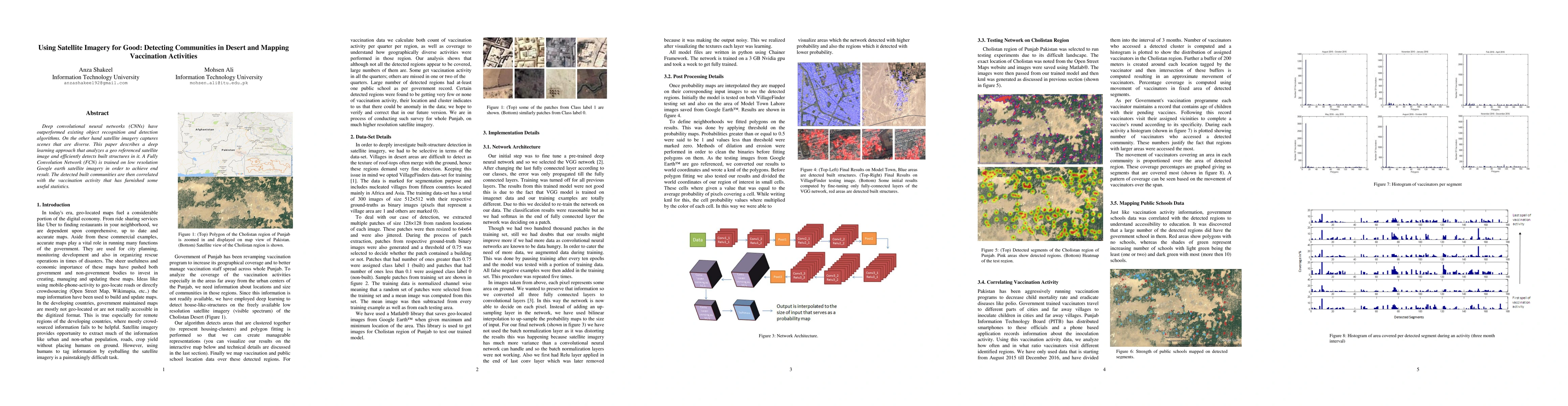 This paper utilizes deep convolutional neural networks to analyze satellite imagery, detecting built structures in desert communities. The detected communities are then correlated with vaccination activities, providing useful statistics for public health initiatives.