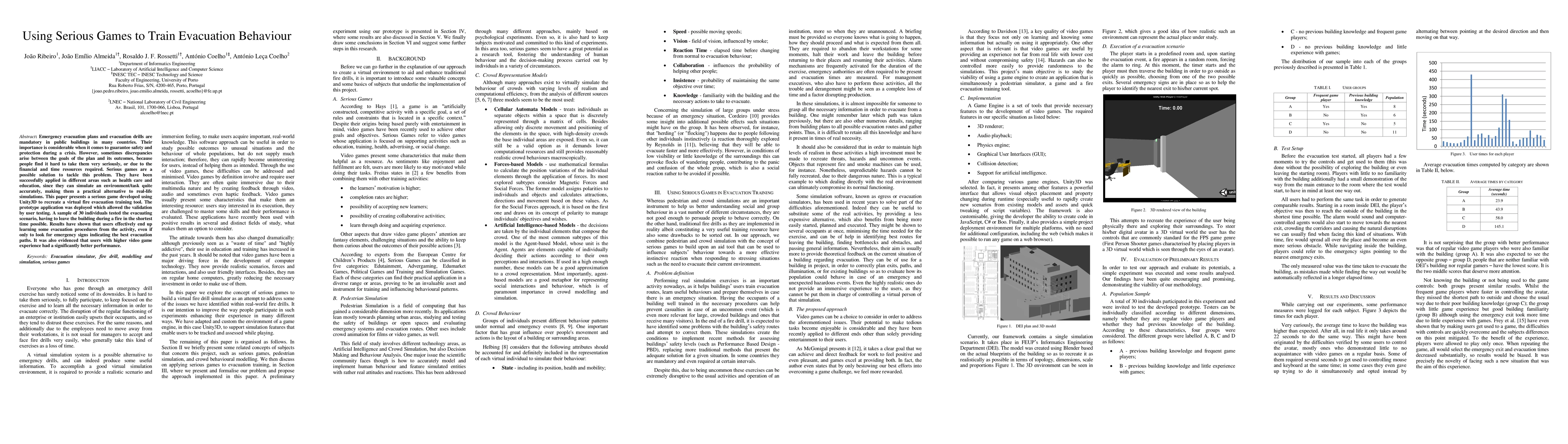 This paper explores the use of a serious game developed in Unity3D to train evacuation behavior, demonstrating that participants effectively learn evacuation procedures, especially those with prior video game experience. User testing showed improved performance in virtual fire evacuation scenarios.