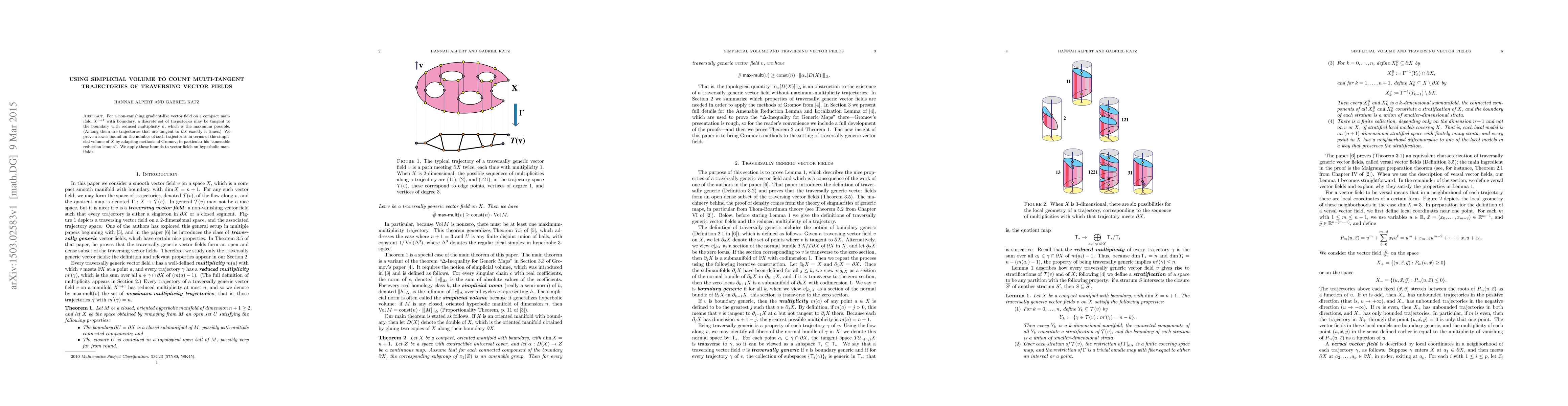 For a non-vanishing gradient-like vector field on a compact manifold $X^{n+1}$ with boundary, a discrete set of trajectories may be tangent to the boundary with reduced multiplicity $n$, which is the maximum possible. (Among them are trajectories that are tangent to $\partial X$ exactly $n$ times.) We prove a lower bound on the number of such trajectories in terms of the simplicial volume of $X$ by adapting methods of Gromov, in particular his "amenable reduction lemma". We apply these bounds to vector fields on hyperbolic manifolds.