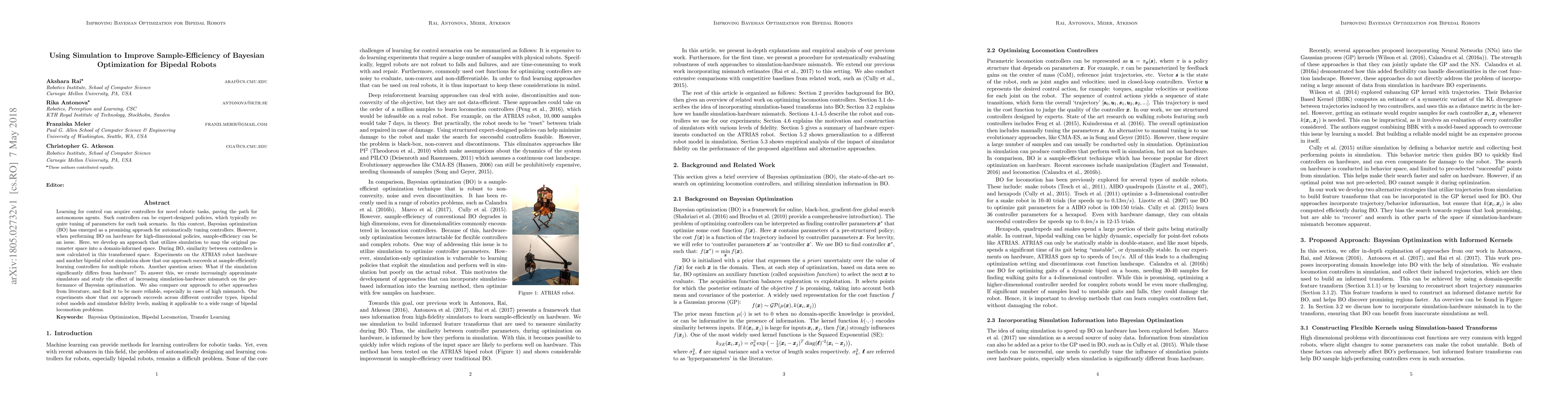 This paper introduces a method to improve the efficiency of Bayesian optimization for learning controllers in bipedal robots using simulation-based domain transformation, achieving reliable performance across different robot models and hardware-mismatch scenarios.