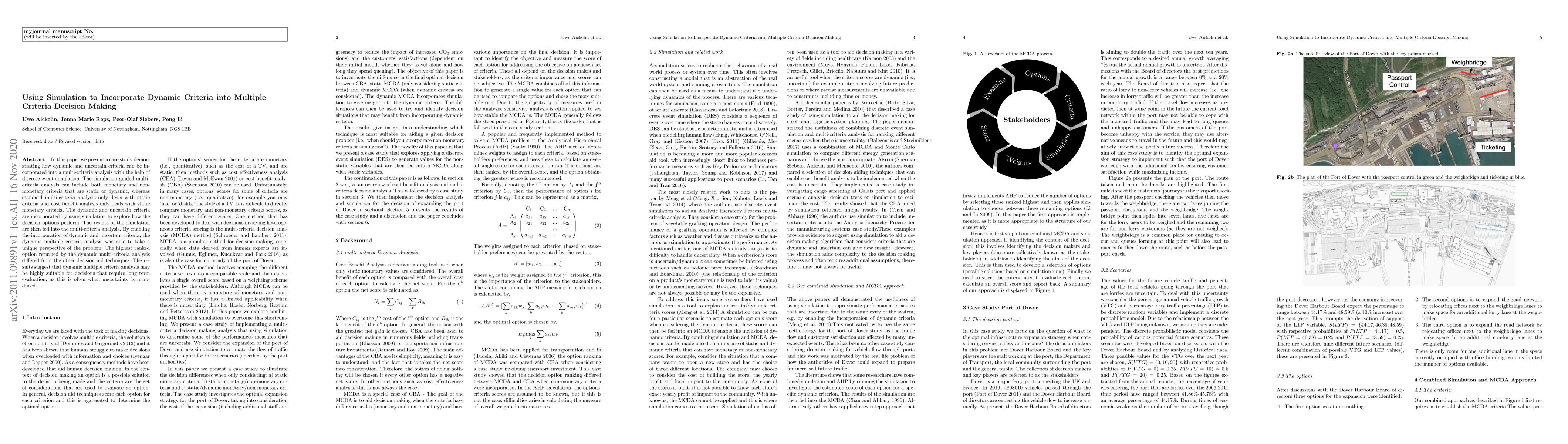 This paper demonstrates a case study on integrating dynamic and uncertain criteria into multicriteria decision-making using discrete event simulation. The simulation-guided analysis allows for both static and dynamic criteria, including non-monetary factors, leading to a unique perspective and different decision outcomes compared to standard multicriteria analysis.