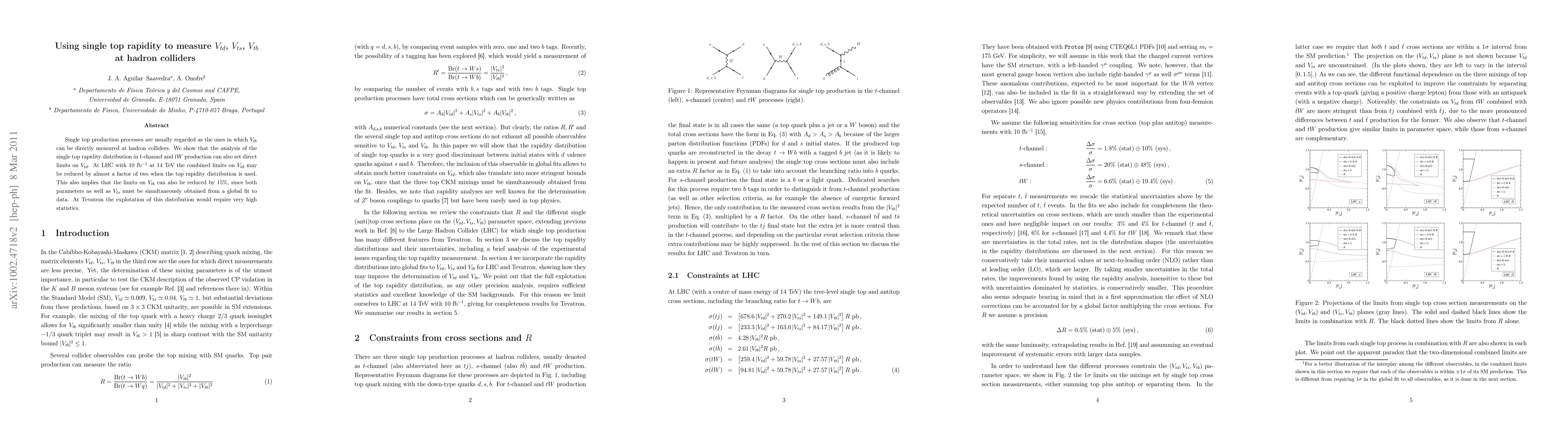Single top production processes are usually regarded as the ones in which V_tb can be directly measured at hadron colliders. We show that the analysis of the single top rapidity distribution in t-channel and tW production can also set direct limits on V_td. At LHC with 10 fb^-1 at 14 TeV the combined limits on V_td may be reduced by almost a factor of two when the top rapidity distribution is used. This also implies that the limits on V_tb can also be reduced by 15%, since both parameters as well as V_ts must be simultaneously obtained from a global fit to data. At Tevatron the explotation of this distribution would require very high statistics.