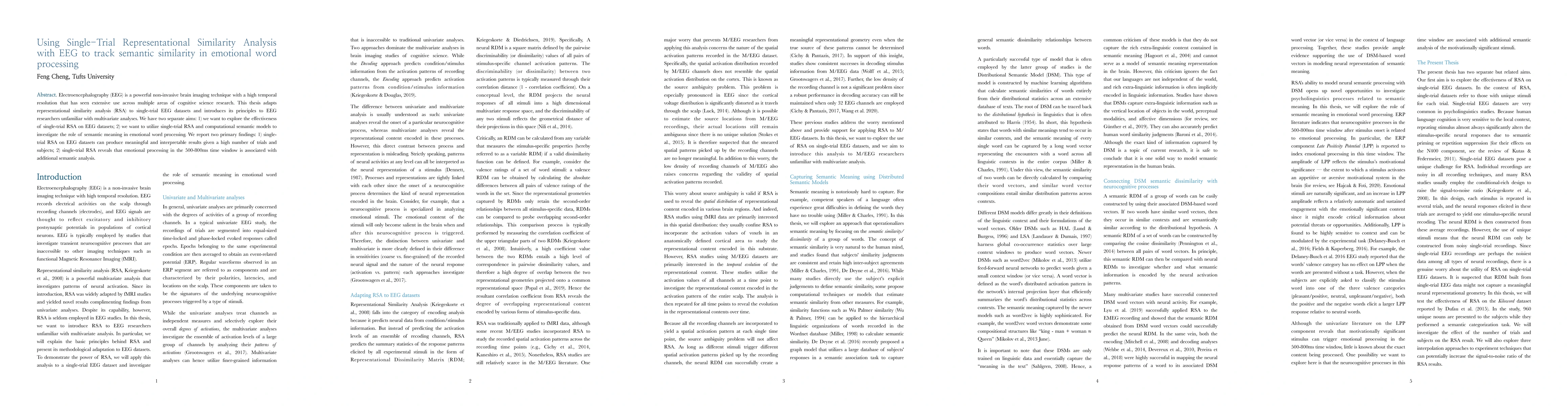 This research adapts representational similarity analysis (RSA) to single-trial EEG data to explore semantic similarity in emotional word processing. The findings indicate that single-trial RSA can yield meaningful results and reveal additional semantic analysis in emotional processing during the 500-800ms time window.